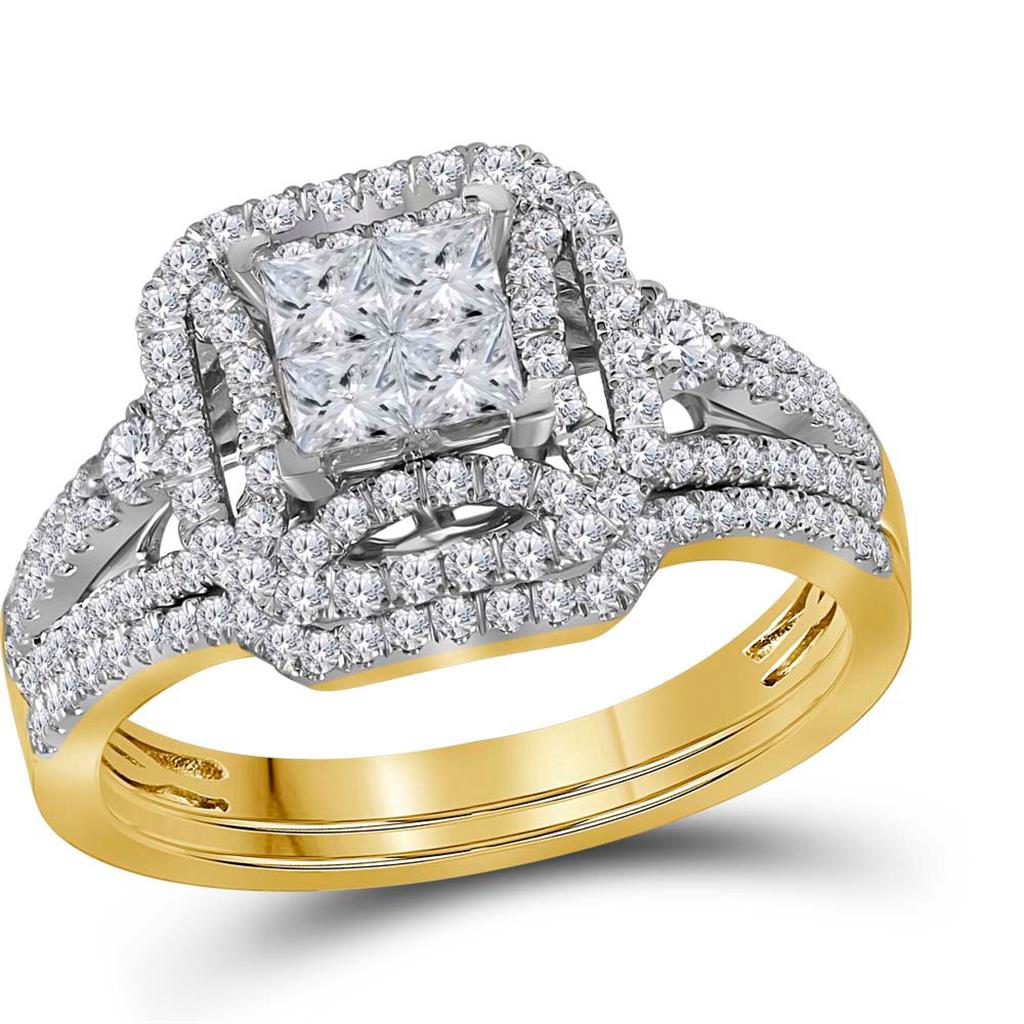 The '14k Yellow Gold Round Diamond Bridal Wedding Ring Set 1 Cttw' is a stunning and exquisite piece of jewelry made from high-quality 14kt yellow gold weighing approximately 4.4692 grams....