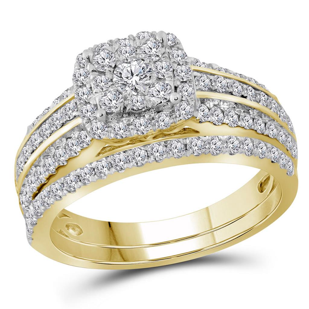 14k Yellow Gold Round Diamond Bridal Wedding Ring Set 1 Cttw