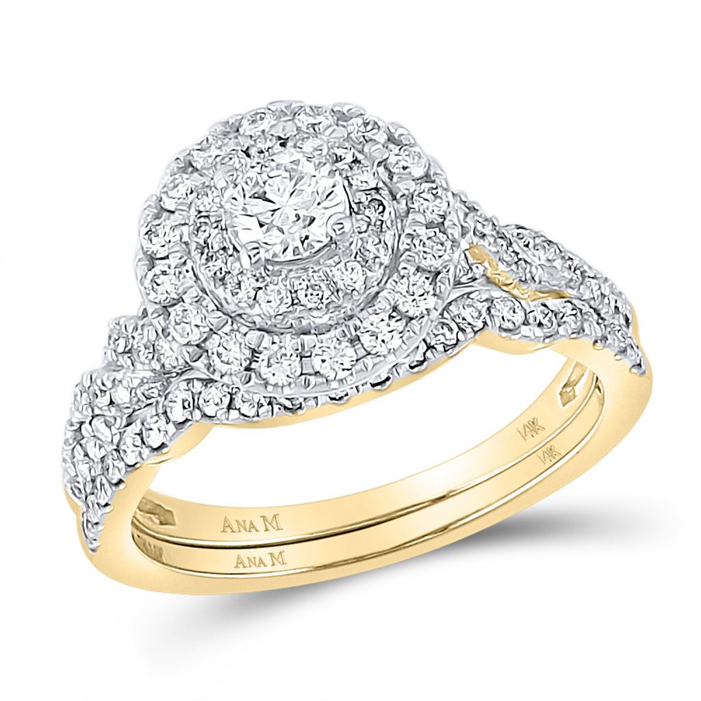 14k Yellow Gold Round Diamond Bridal Wedding Ring Set 1 Cttw (Certified)