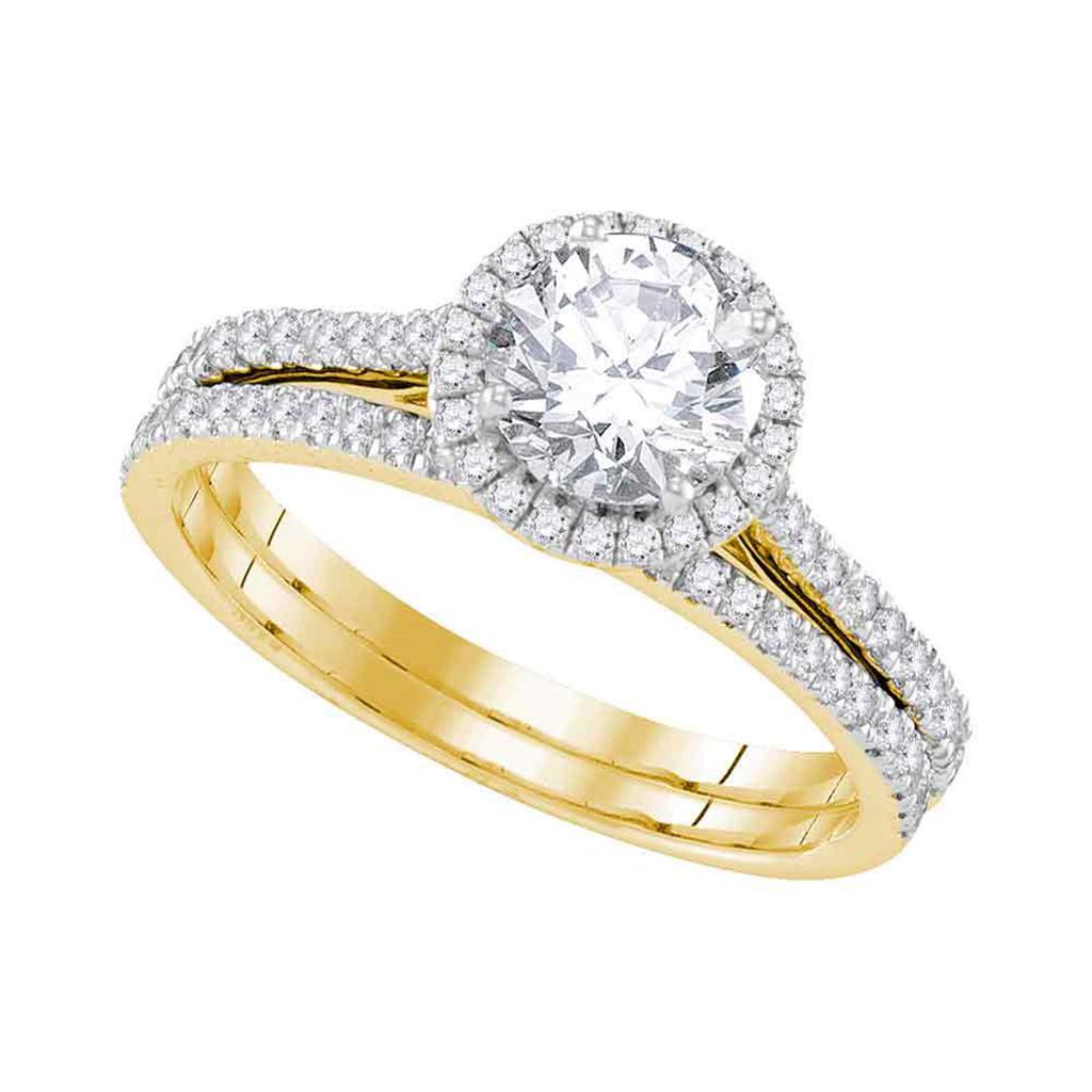 14k Yellow Gold Round Diamond Bridal Wedding Ring Set 1 Cttw (Certified)
