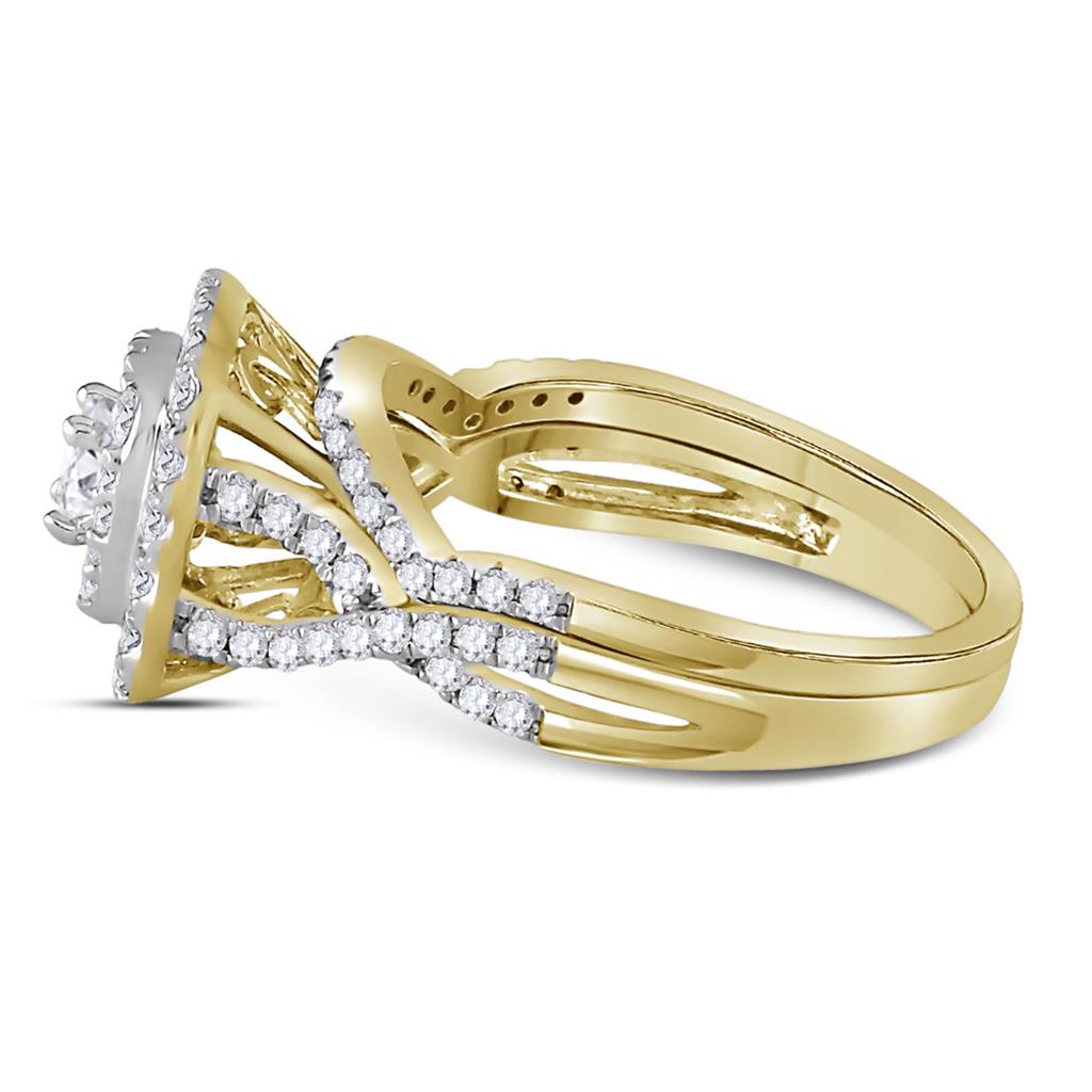 14k Yellow Gold Round Diamond Bridal Wedding Ring Set 1 Cttw (Certified)