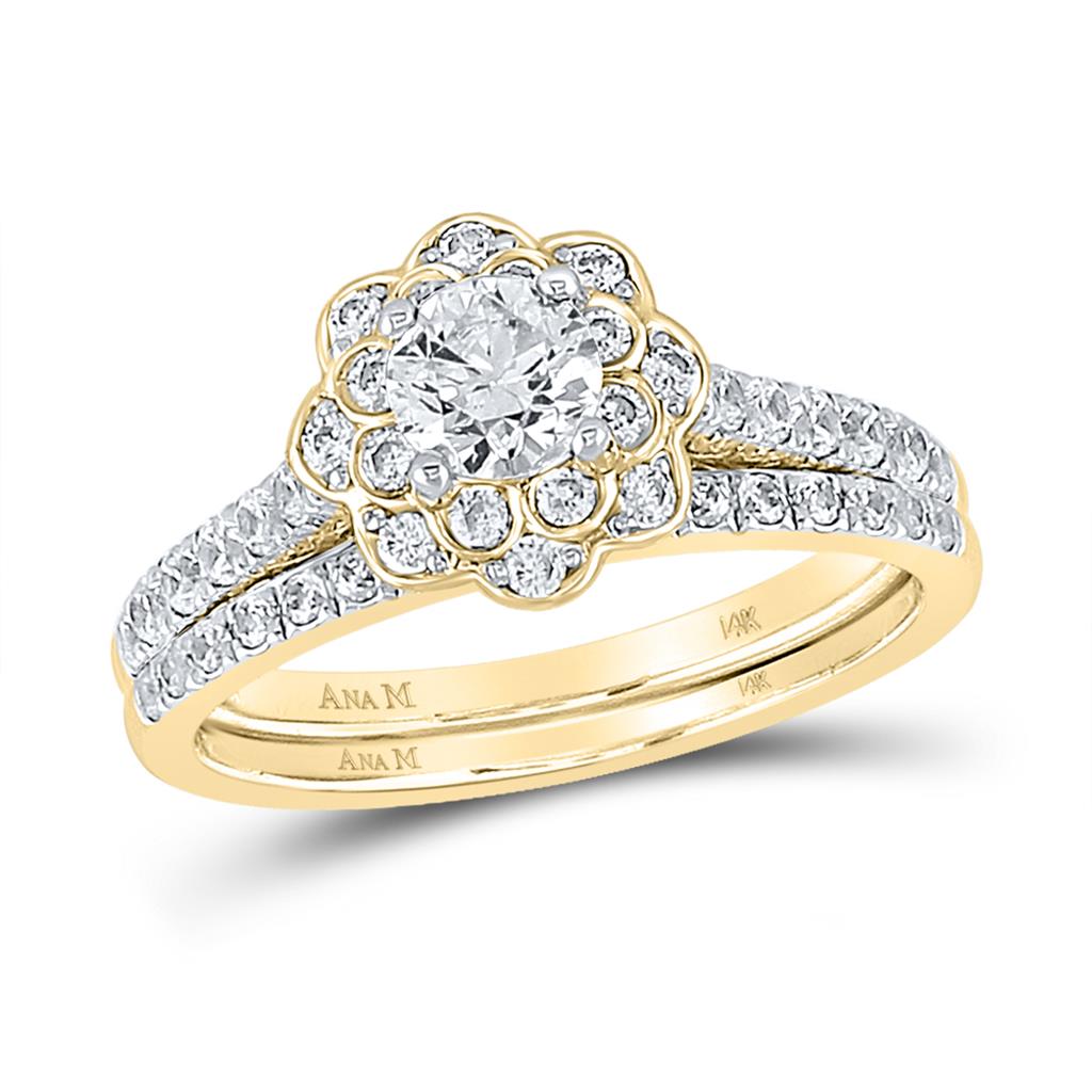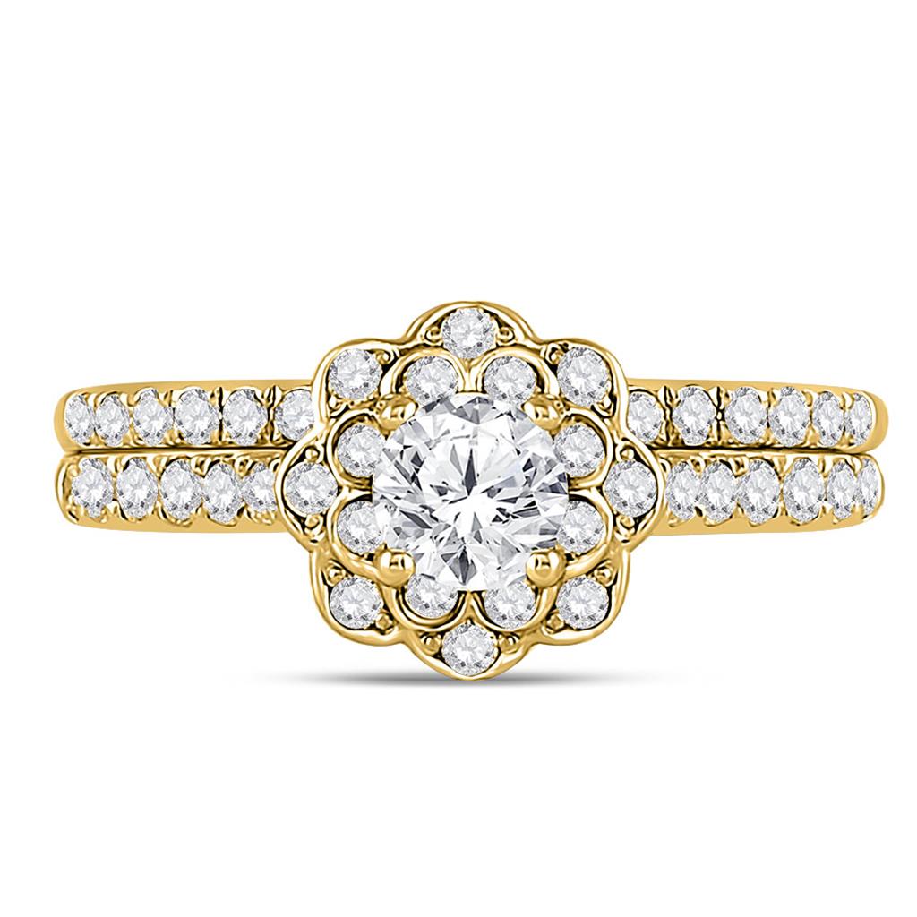14k Yellow Gold Round Diamond Bridal Wedding Ring Set 1 Cttw (Certified)