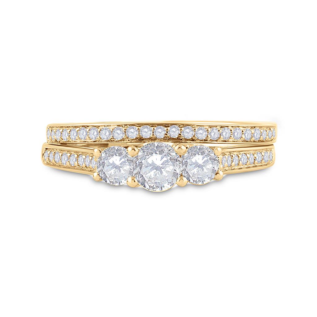 14k Yellow Gold Round Diamond Bridal Wedding Ring Set 1 Cttw (Certified)