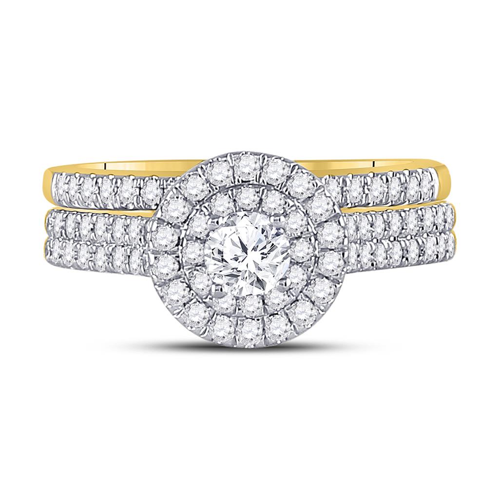 14k Yellow Gold Round Diamond Bridal Wedding Ring Set 1 Cttw (Certified)