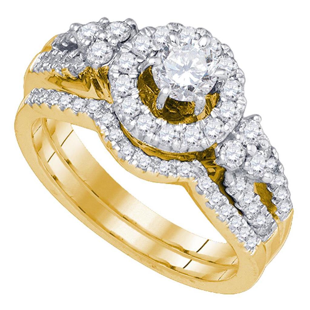 Introducing the exquisite '14k Yellow Gold Round Diamond Bridal Wedding Ring Set 1 Cttw', an exceptional piece of jewelry crafted in shimmering 14kt yellow gold with a total weight of...