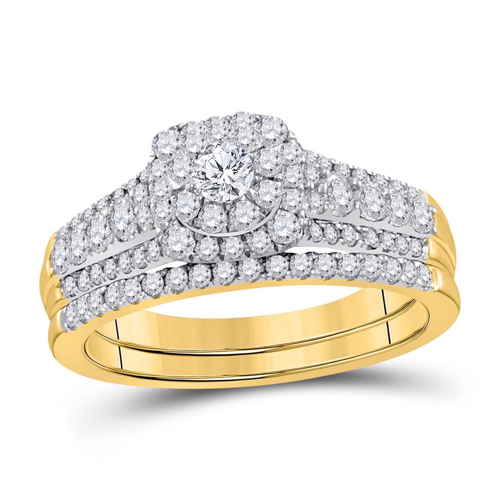 14k Yellow Gold Round Diamond Bridal Wedding Ring Set 1 Cttw