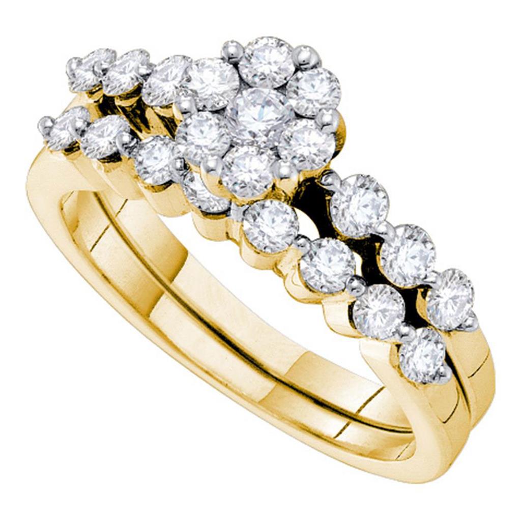 14k Yellow Gold Round Diamond Bridal Wedding Ring Set 1 Cttw