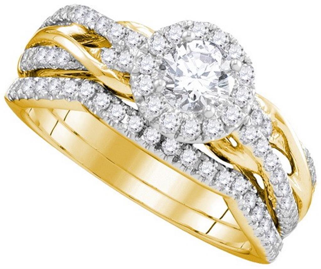 14k Yellow Gold Round Diamond Bridal Wedding Ring Set 1 Cttw