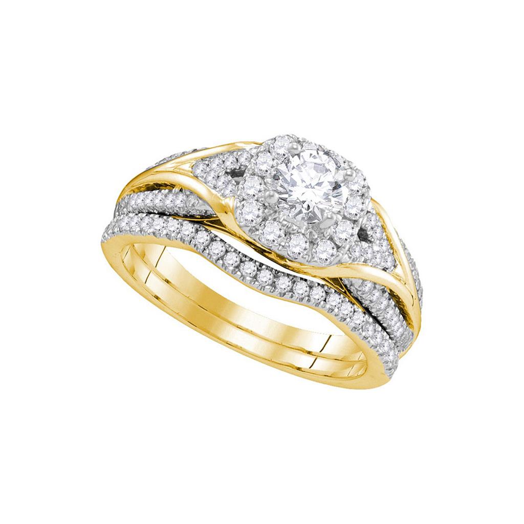 14k Yellow Gold Round Diamond Bridal Wedding Ring Set 1 Cttw