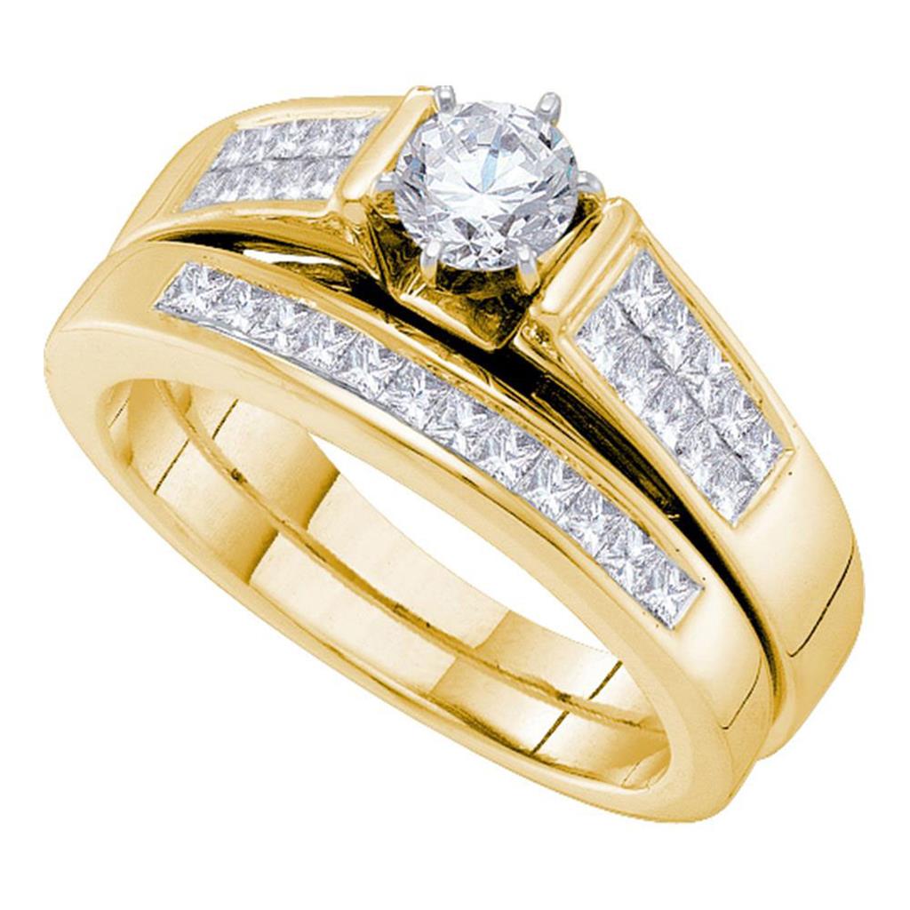 14k Yellow Gold Round Diamond Bridal Wedding Ring Set 1 Cttw