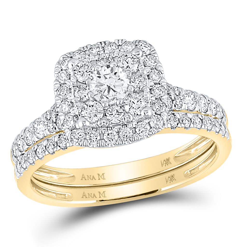 14k Yellow Gold Round Diamond Bridal Wedding Ring Set 1 Cttw