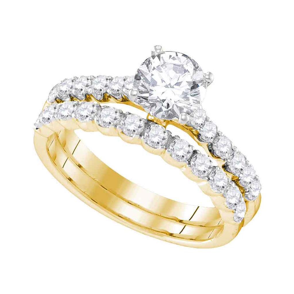 14k Yellow Gold Round Diamond Bridal Wedding Ring Set 2-1/5 Cttw (Certified)