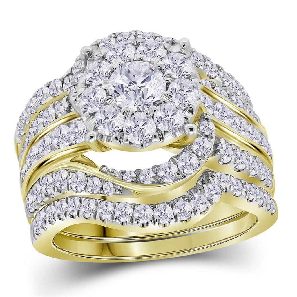14k Yellow Gold Round Diamond Bridal Wedding Ring Set 2-3/8 Cttw