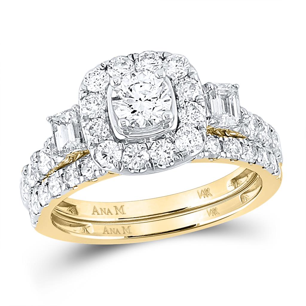 14k Yellow Gold Round Diamond Bridal Wedding Ring Set 2 Cttw (Certified)