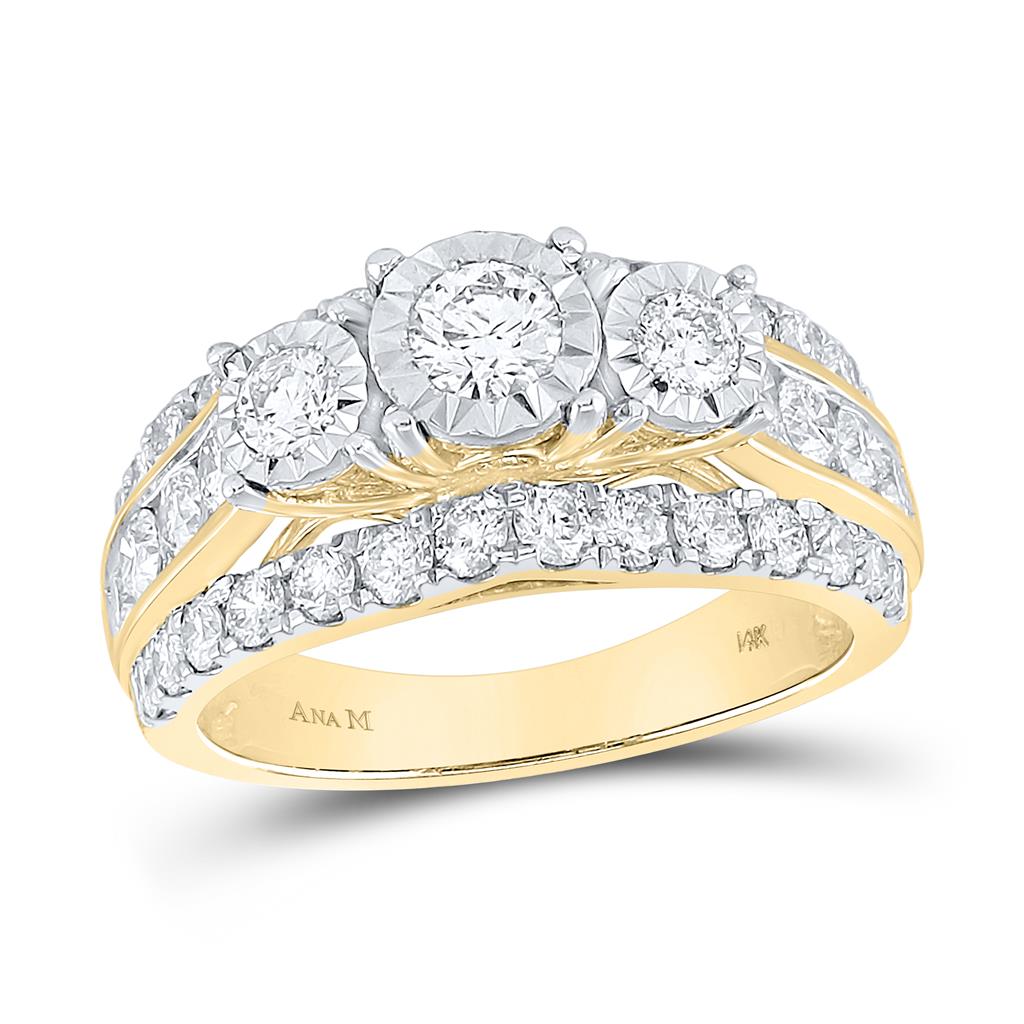 14k Yellow Gold Round Diamond Bridal Wedding Ring Set 2 Cttw (Certified)