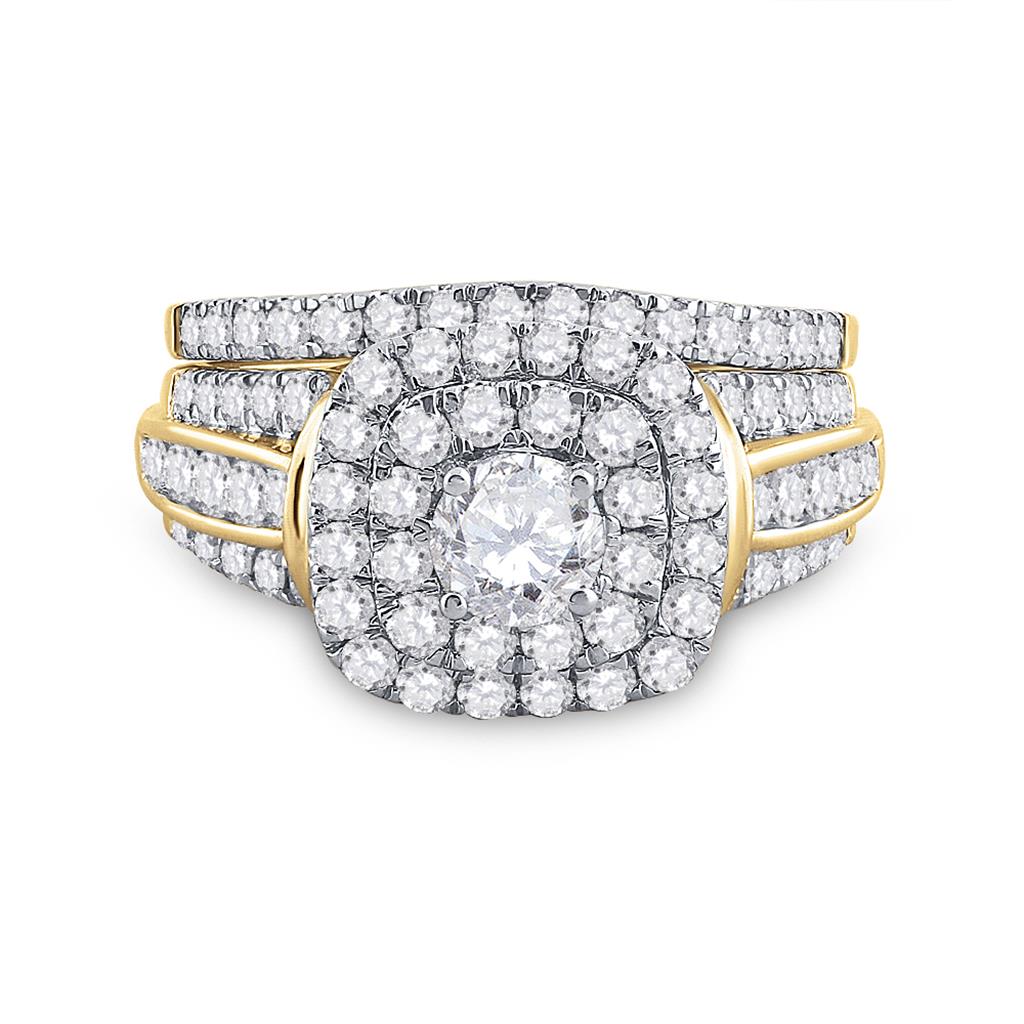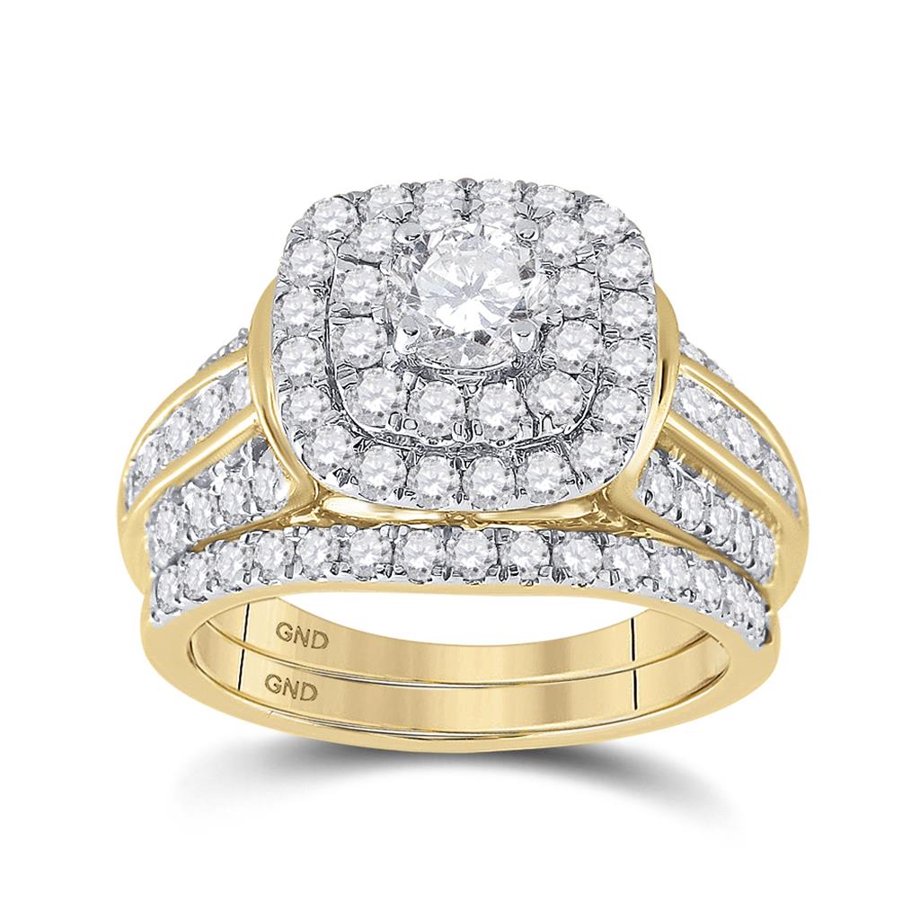 14k Yellow Gold Round Diamond Bridal Wedding Ring Set 2 Cttw (Certified)