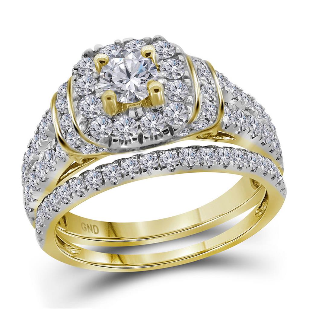 14k Yellow Gold Round Diamond Bridal Wedding Ring Set 2 Cttw