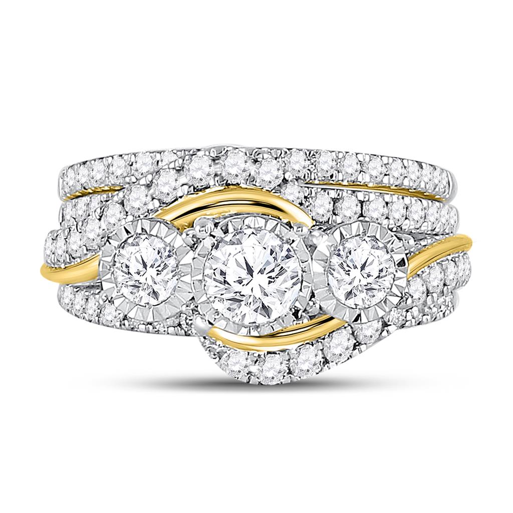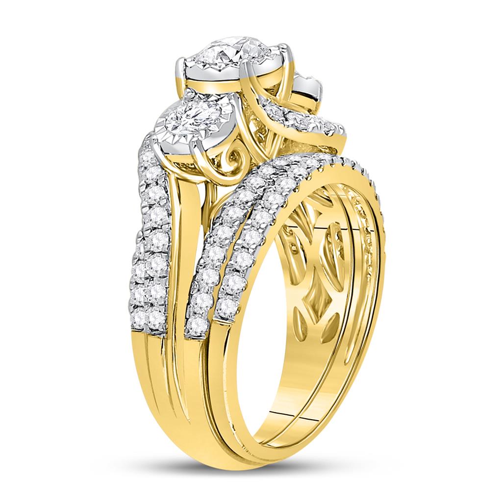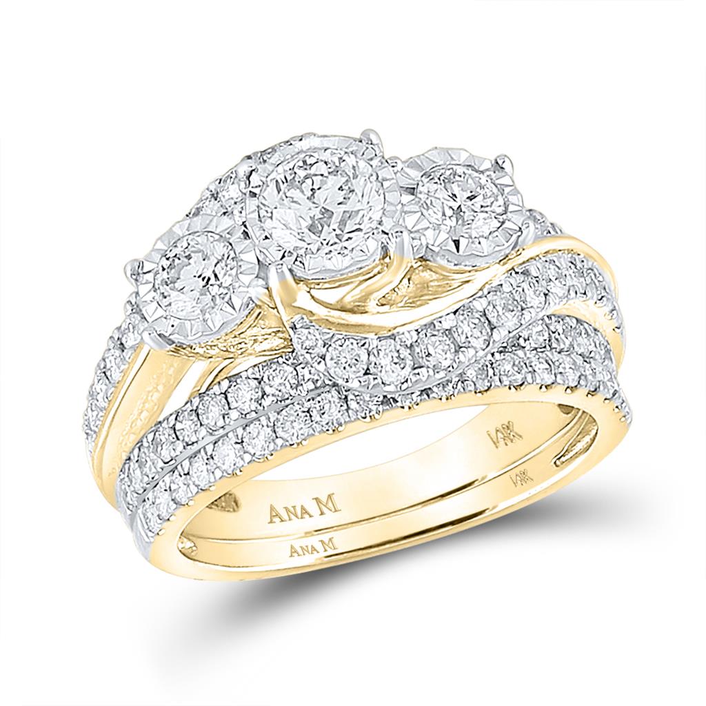 14k Yellow Gold Round Diamond Bridal Wedding Ring Set 2 Ctw (Certified)