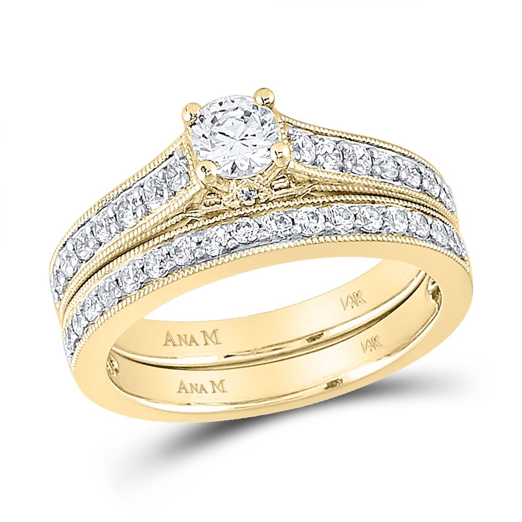 14k Yellow Gold Round Diamond Bridal Wedding Ring Set 3/4 Cttw (Certified)