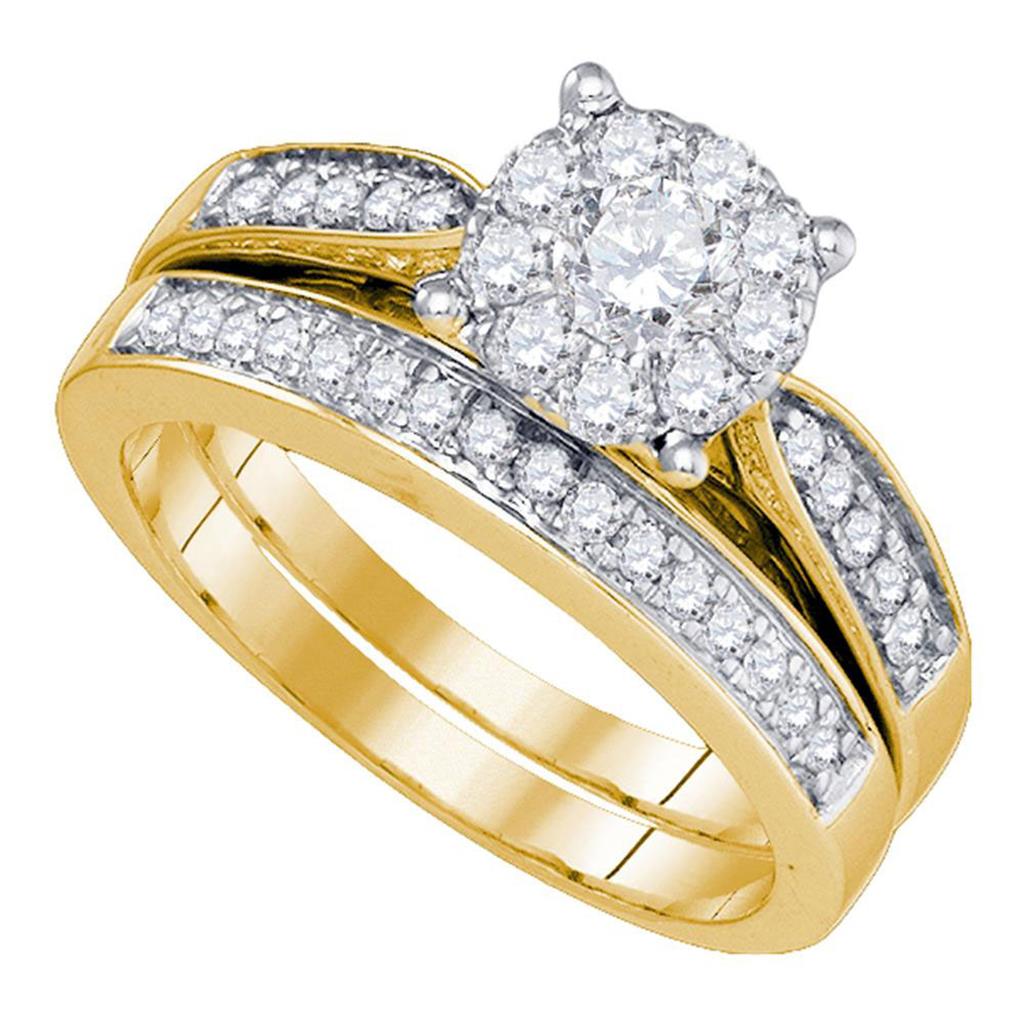 14k Yellow Gold Round Diamond Bridal Wedding Ring Set 3/4 Cttw