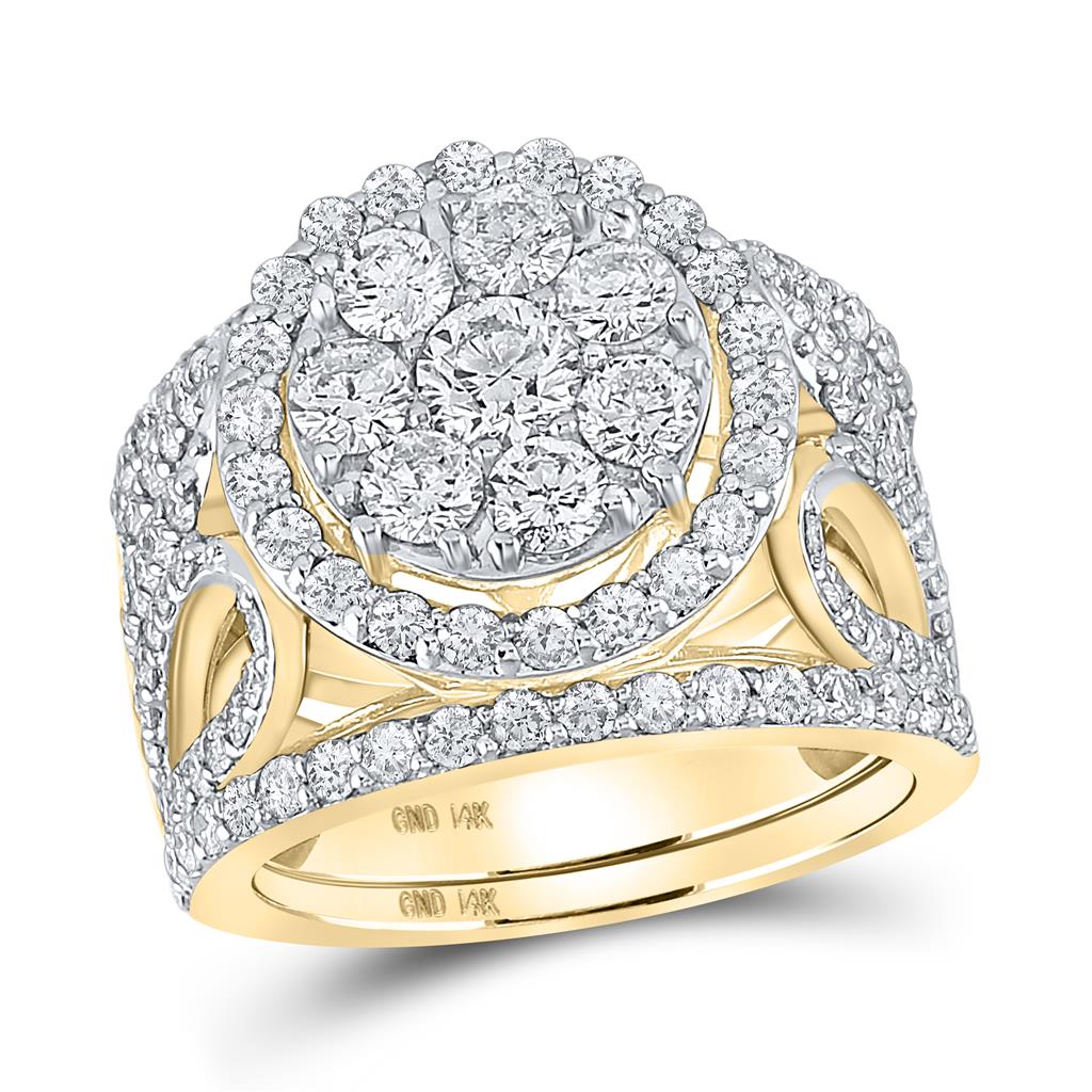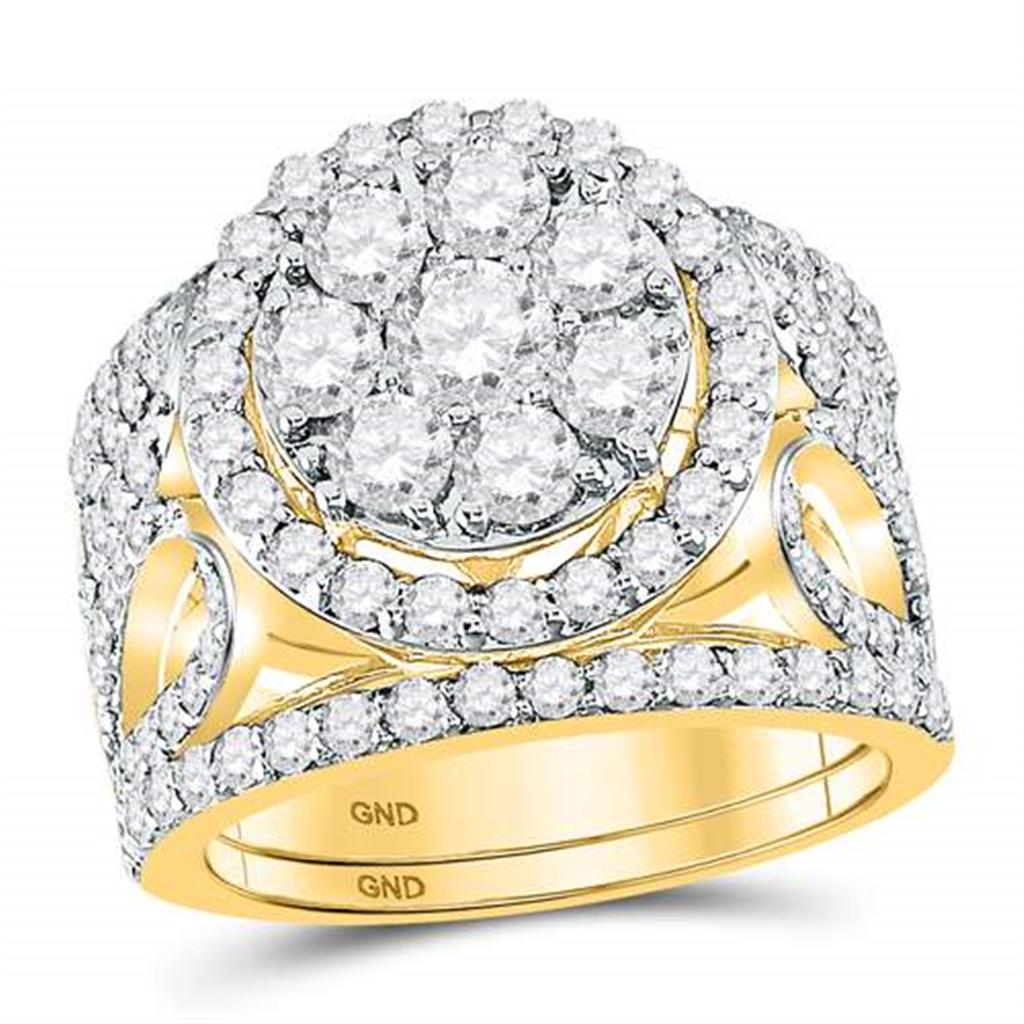 14k Yellow Gold Round Diamond Bridal Wedding Ring Set 3 Cttw