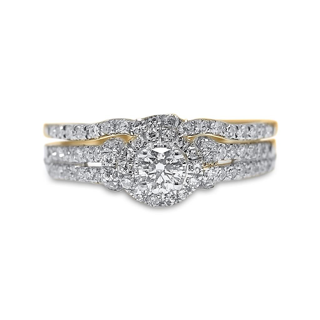14k Yellow Gold Round Diamond Bridal Wedding Ring Set 5/8 Cttw