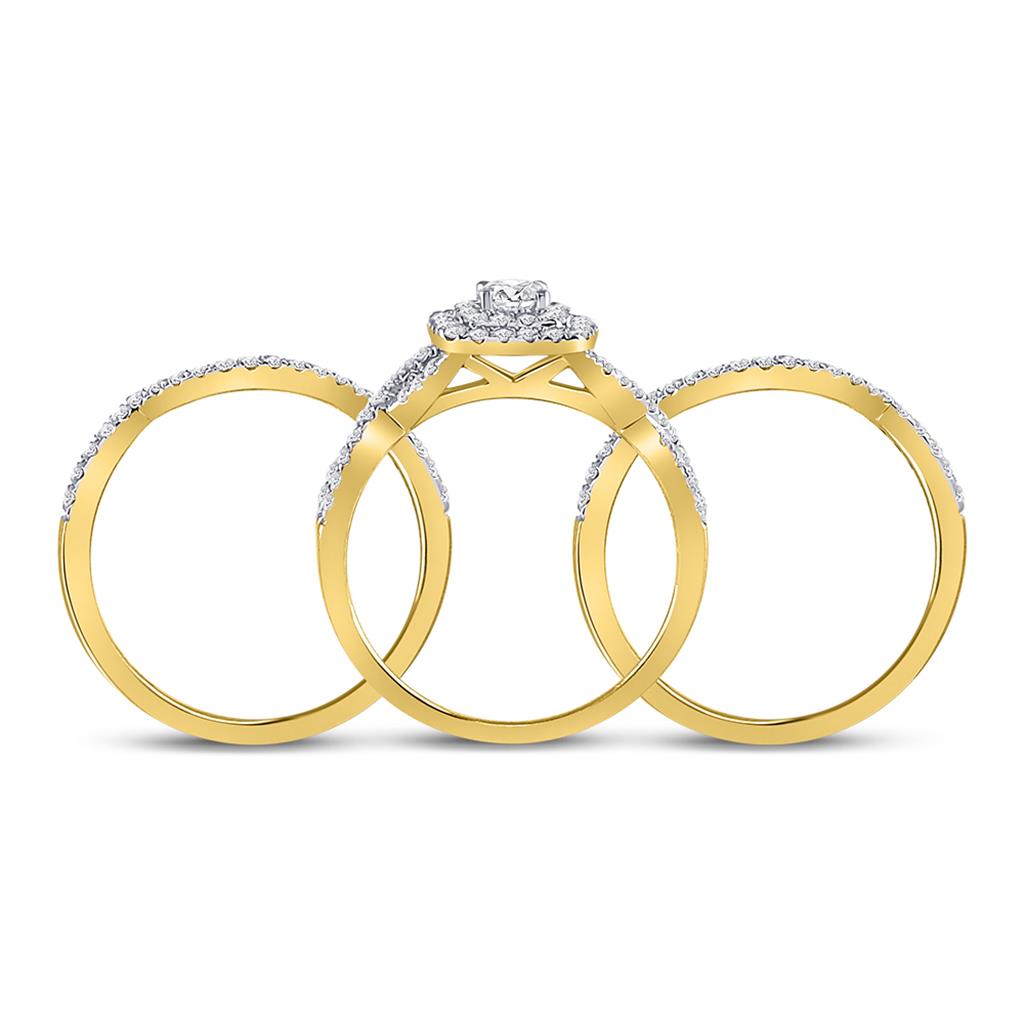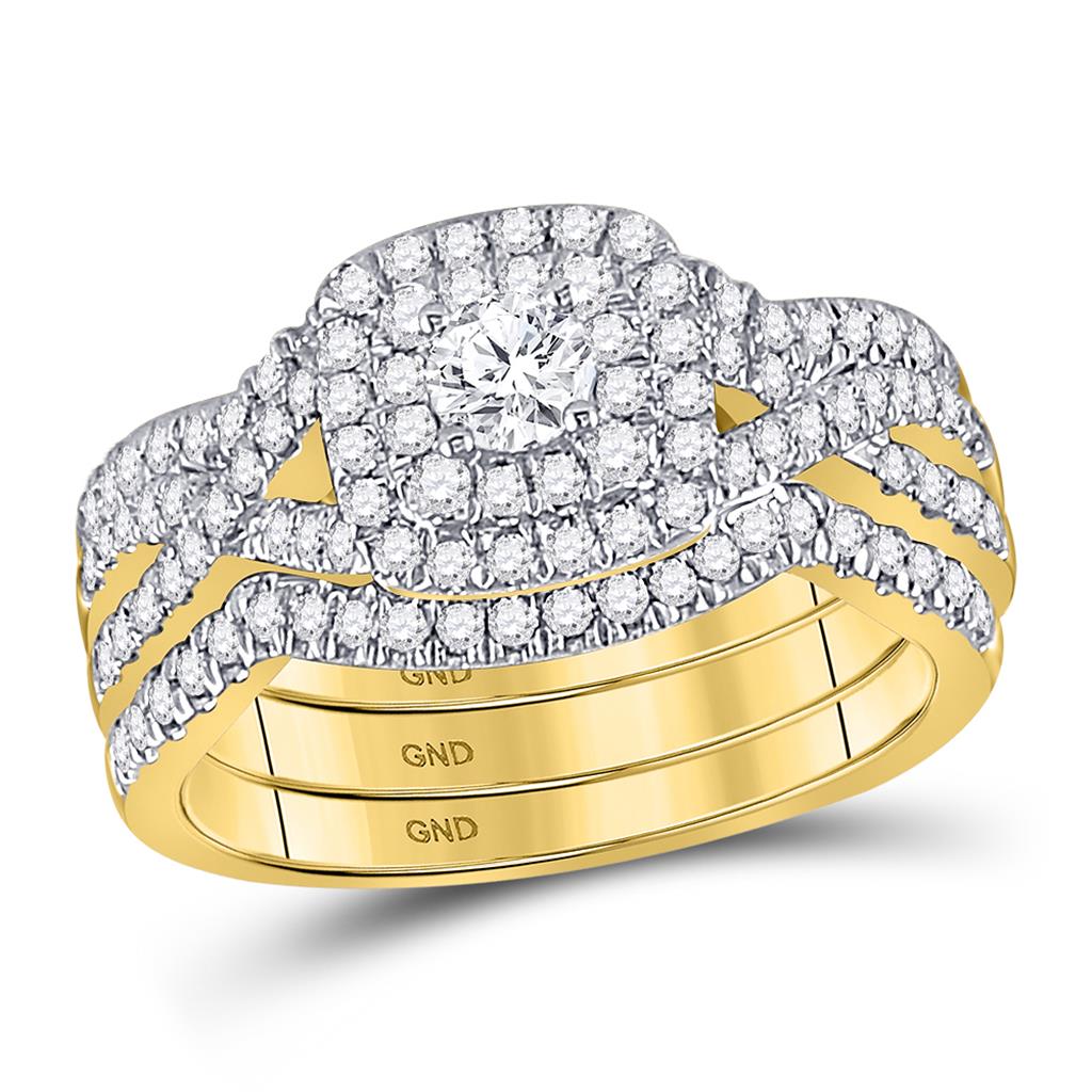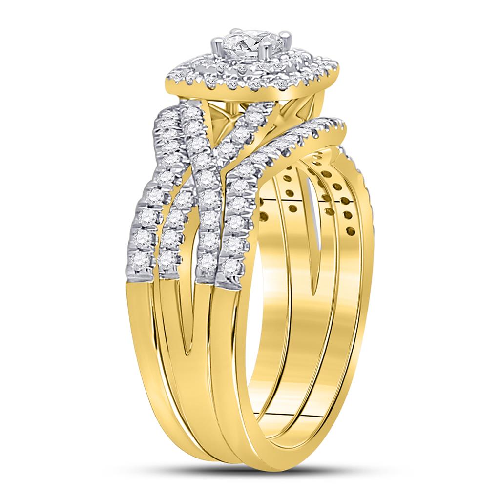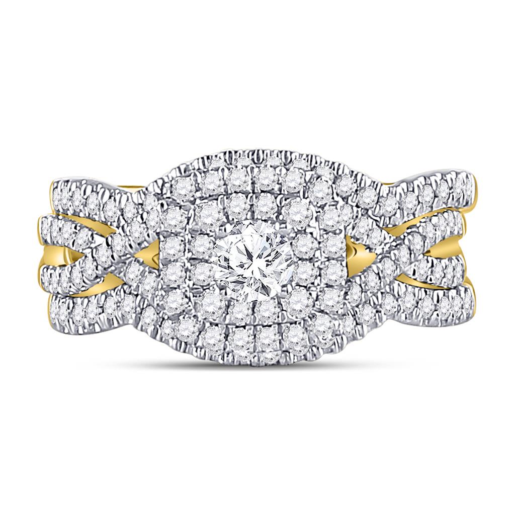 14k Yellow Gold Round Diamond Bridal Wedding Ring Set 7/8 Cttw (Certified)