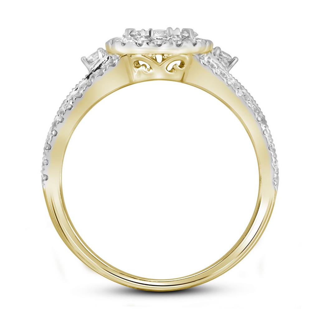 14k Yellow Gold Round Diamond Cluster Bridal Wedding Ring Set 1 Cttw
