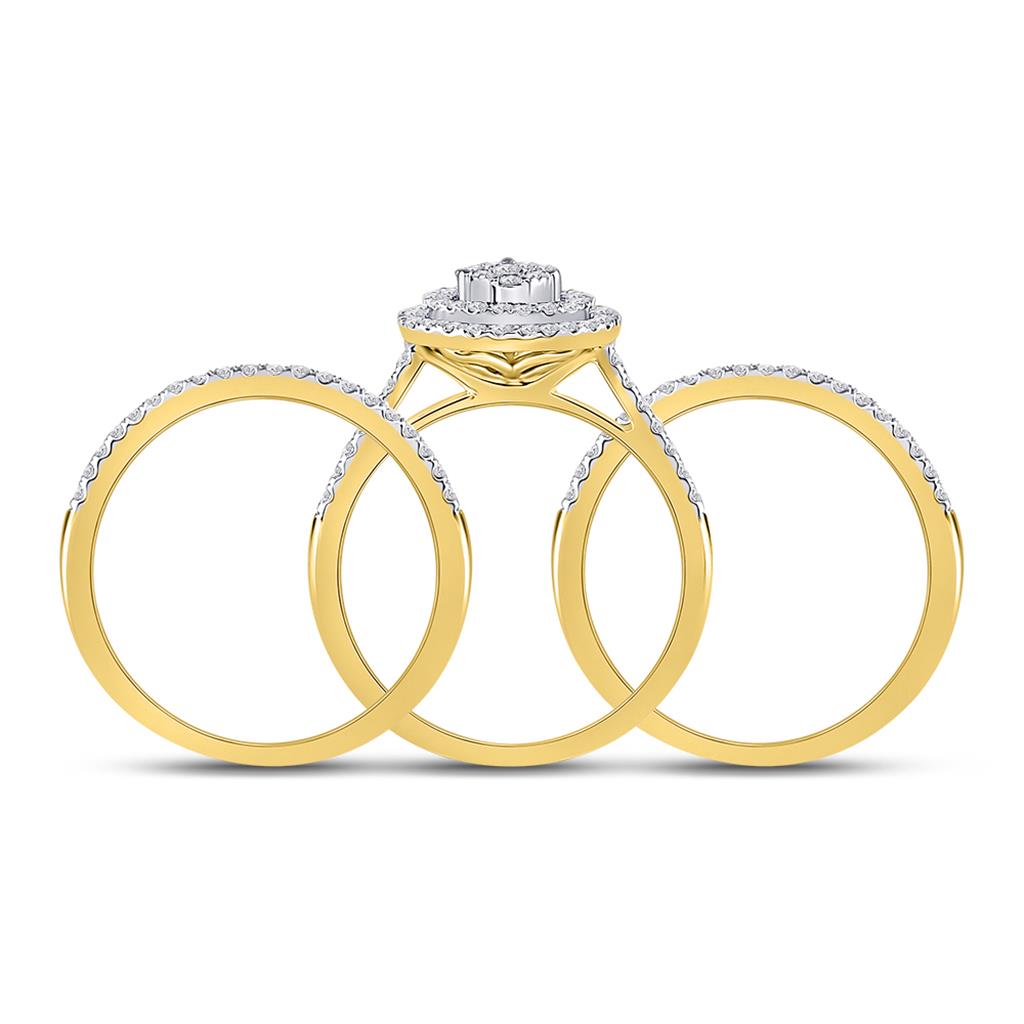 14k Yellow Gold Round Diamond Cluster Bridal Wedding Ring Set 3/4 Cttw