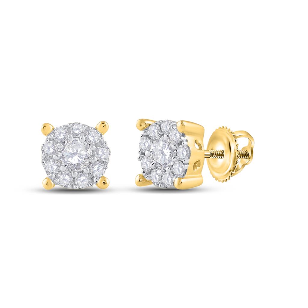 14k Yellow Gold Round Diamond Cluster Earrings 1/3 Cttw