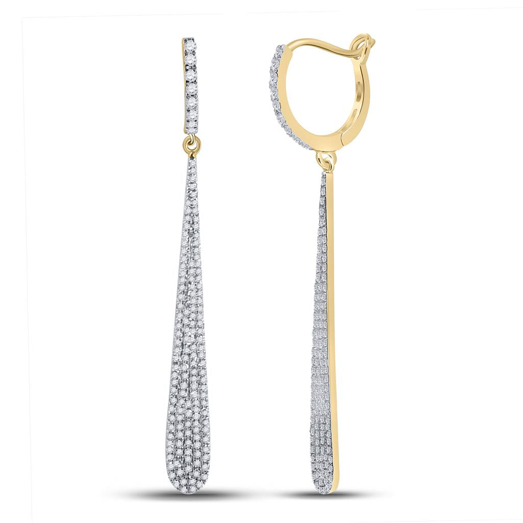 These elegant drop dangle earrings are crafted from 14kt yellow gold and weigh approximately 4.1206 grams. The sparkling diamonds add up to 3/4 carat in gemstone weight and are prong-set...