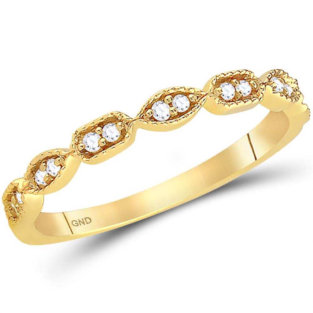 14k Yellow Gold Round Diamond Geometric Stackable Band Ring 1/10 Ctw