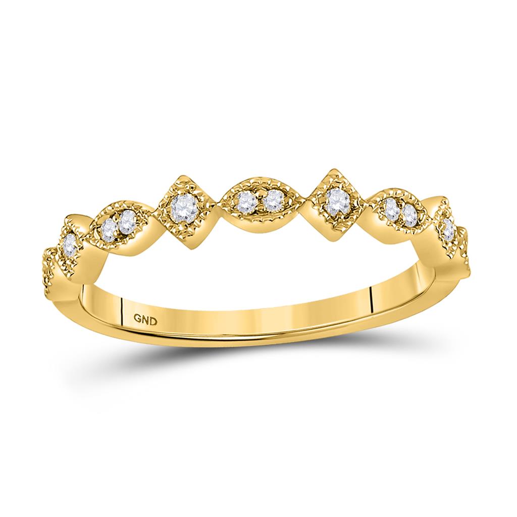 14k Yellow Gold Round Diamond Geometric Stackable Band Ring 1/10 Ctw