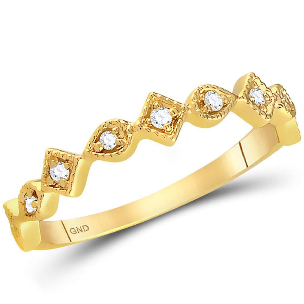 14k Yellow Gold Round Diamond Geometric Stackable Band Ring 1/10 Ctw