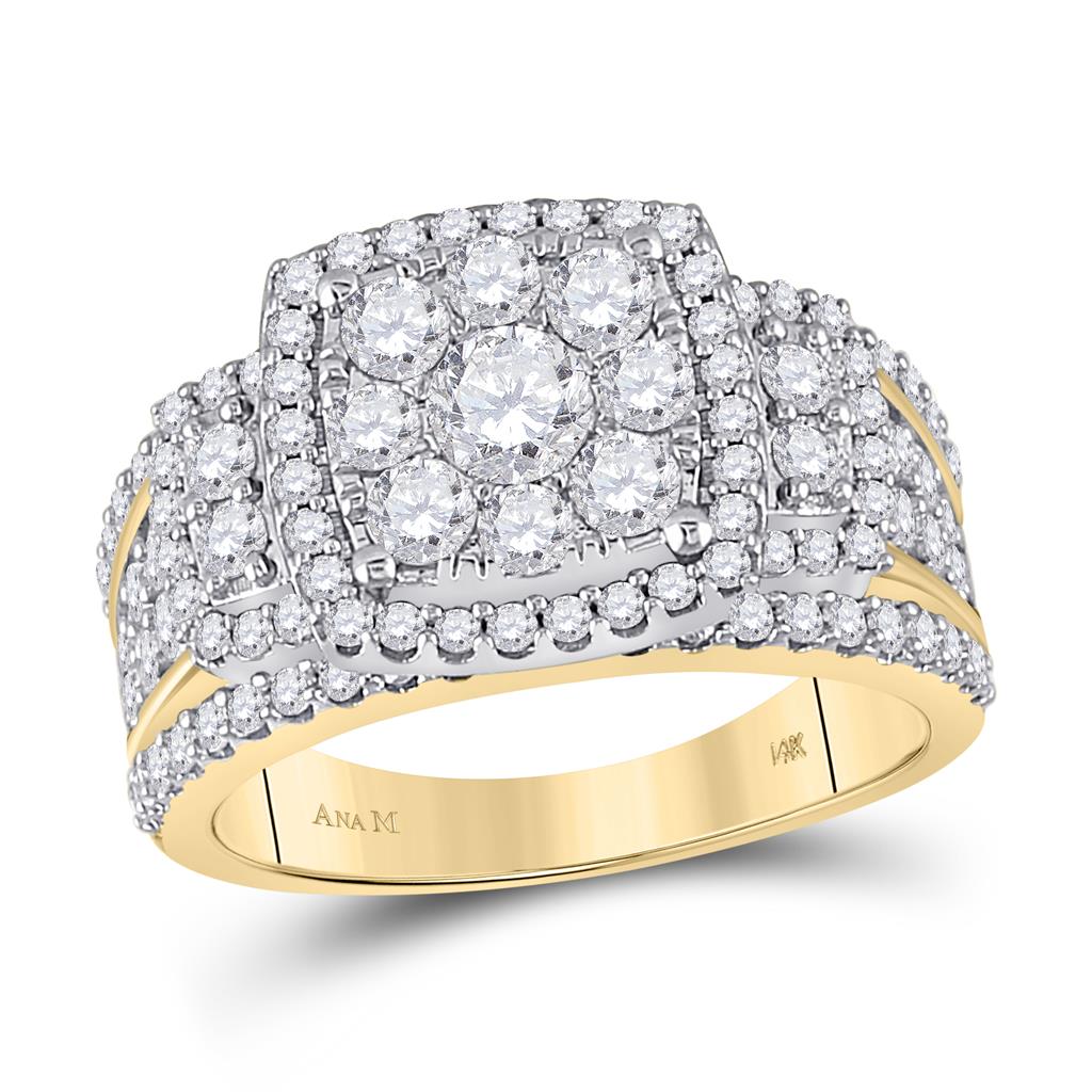 14k Yellow Gold Round Diamond Halo Bridal Engagement Ring 2 Cttw