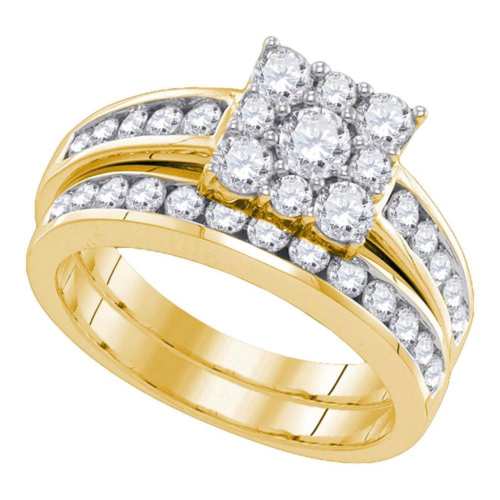 14k Yellow Gold Round Diamond Halo Bridal Wedding Ring Set 1-1/2 Cttw