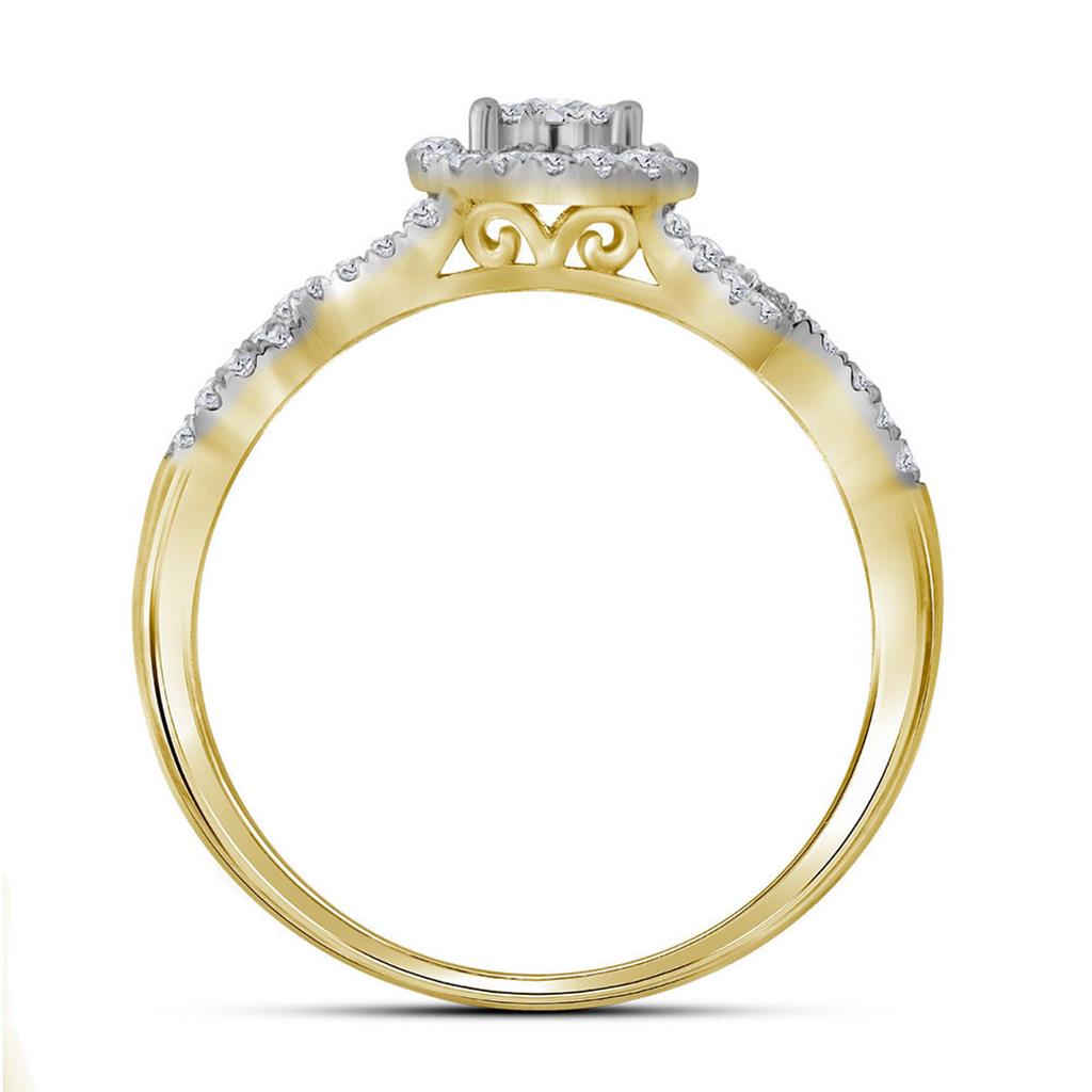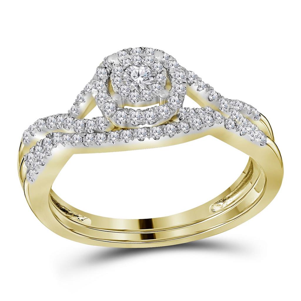 14k Yellow Gold Round Diamond Halo Bridal Wedding Ring Set 1/2 Cttw