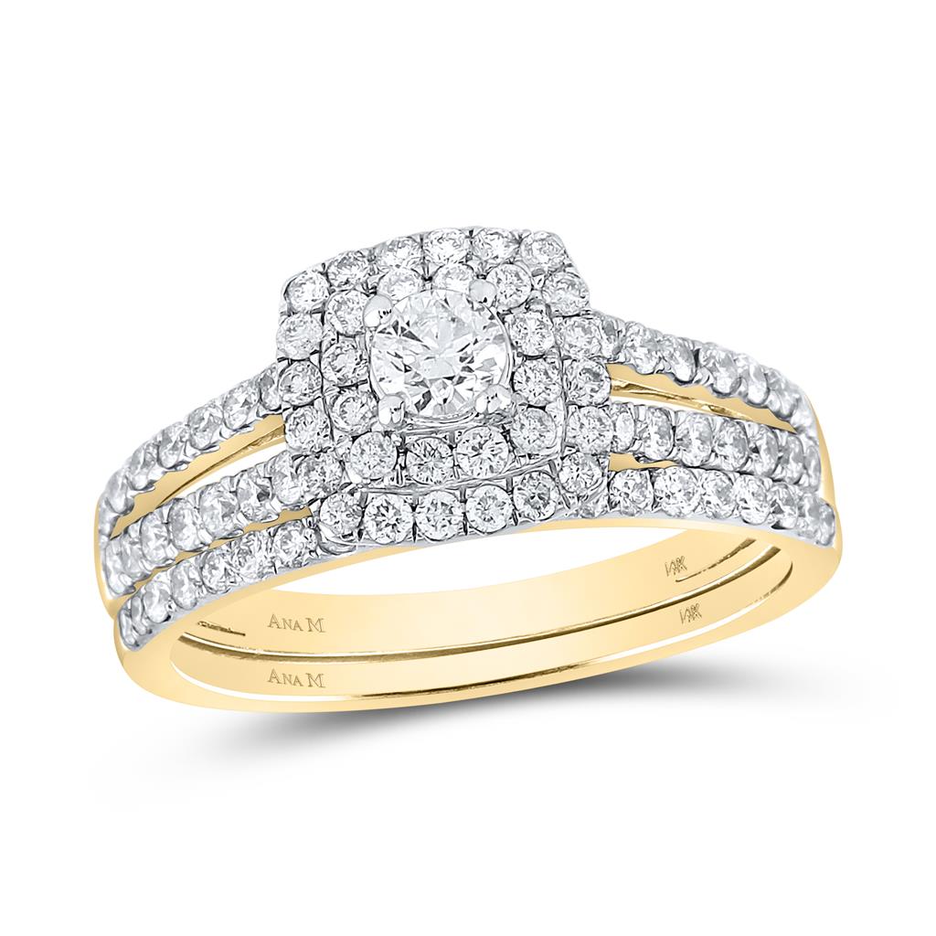 14k Yellow Gold Round Diamond Halo Bridal Wedding Ring Set 1 Cttw (Certified)