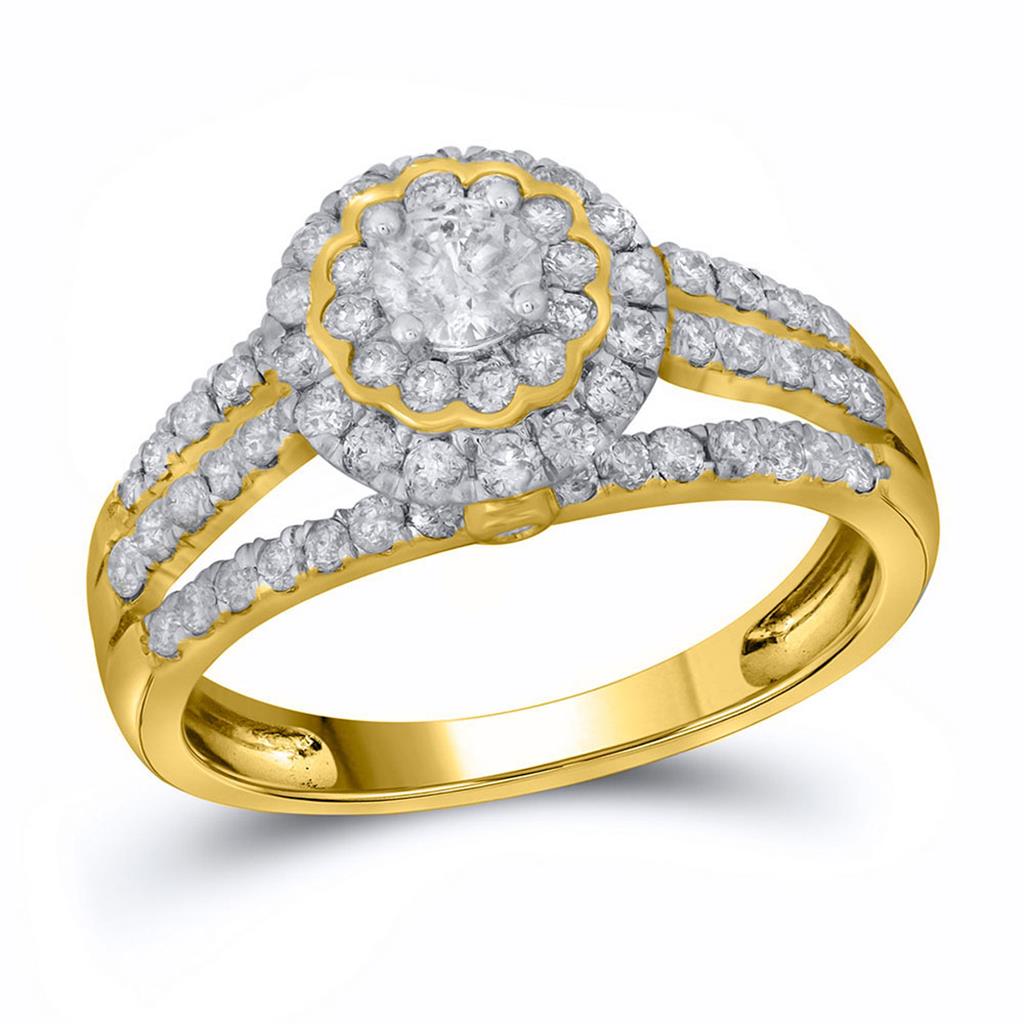 14k Yellow Gold Round Diamond Halo Bridal Wedding Ring Set 1 Cttw (Certified)