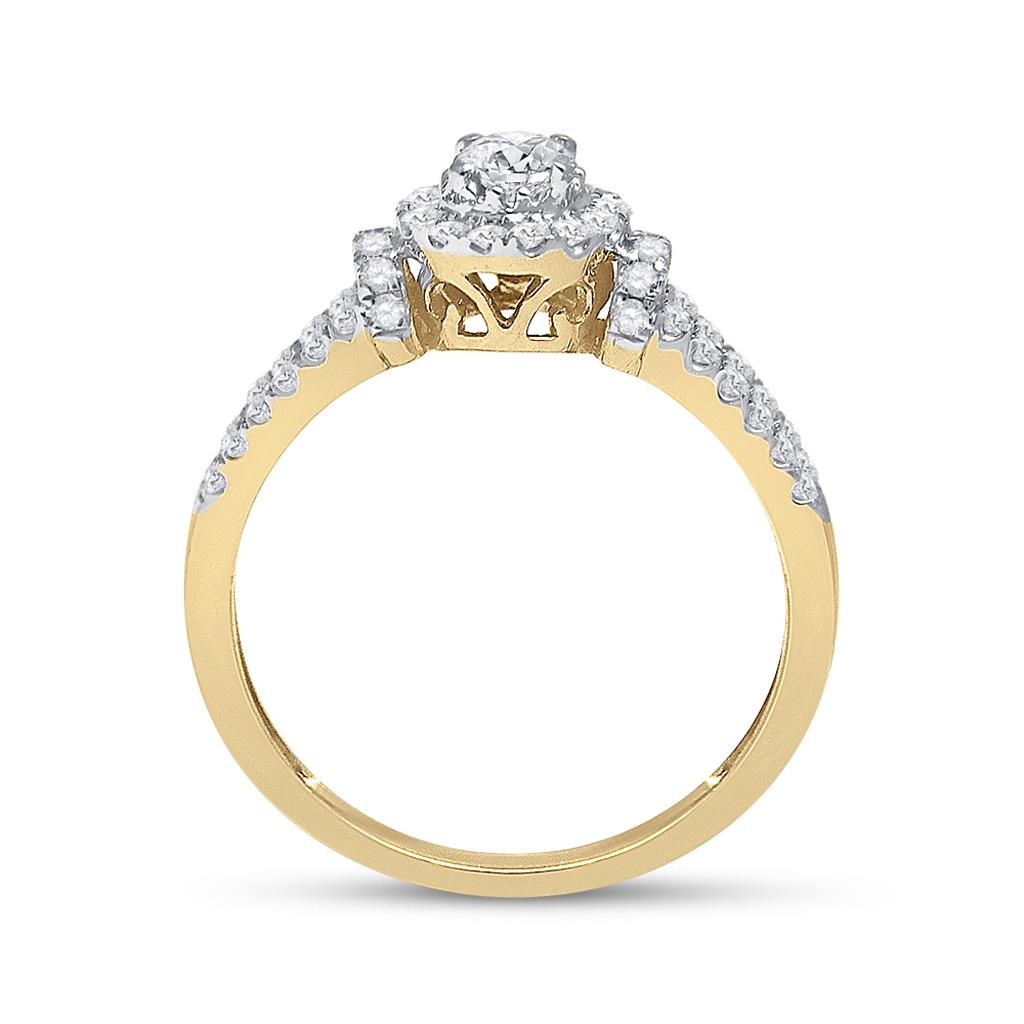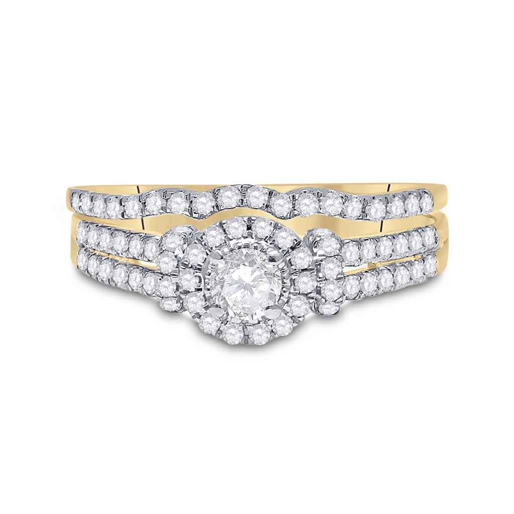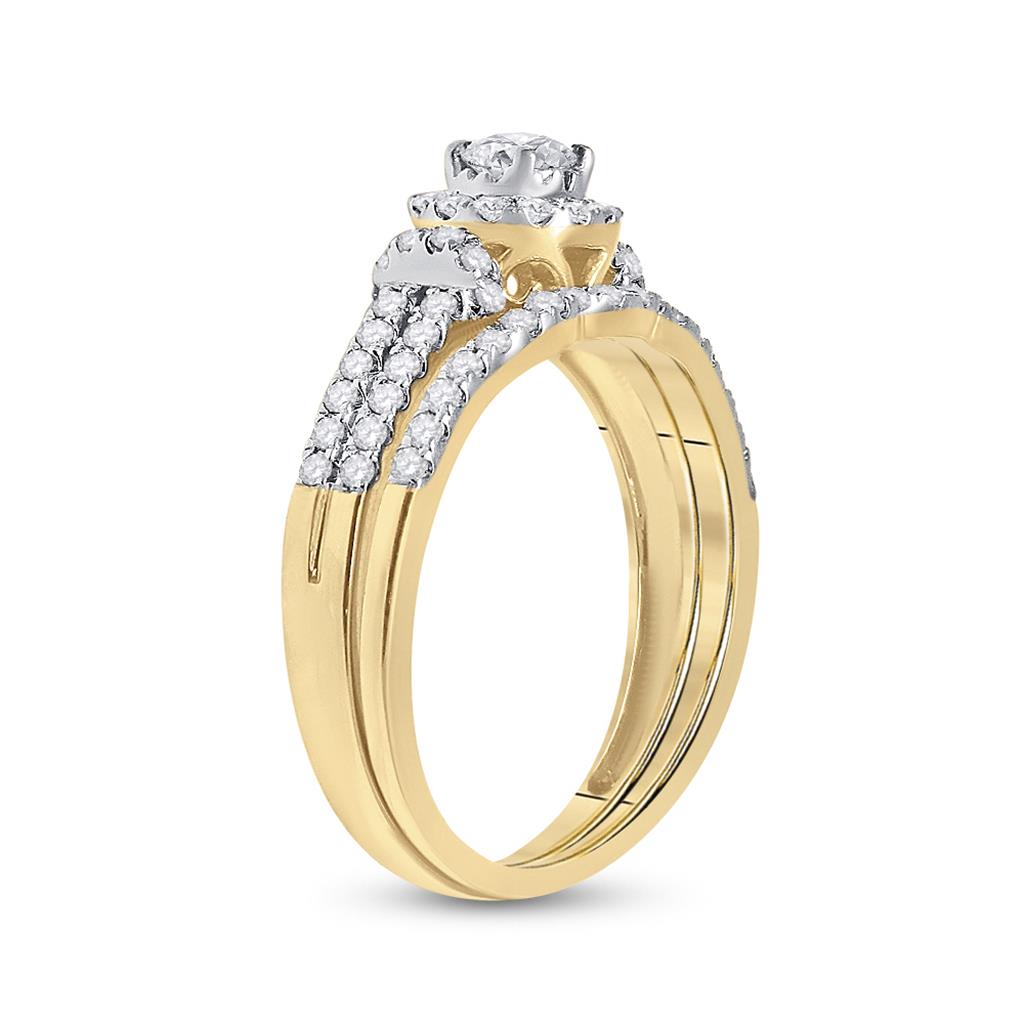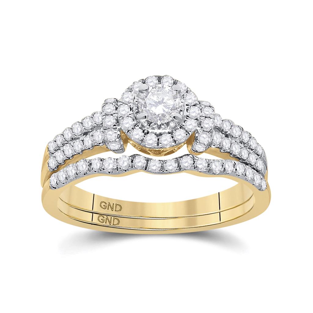 14k Yellow Gold Round Diamond Halo Bridal Wedding Ring Set 5/8 Cttw