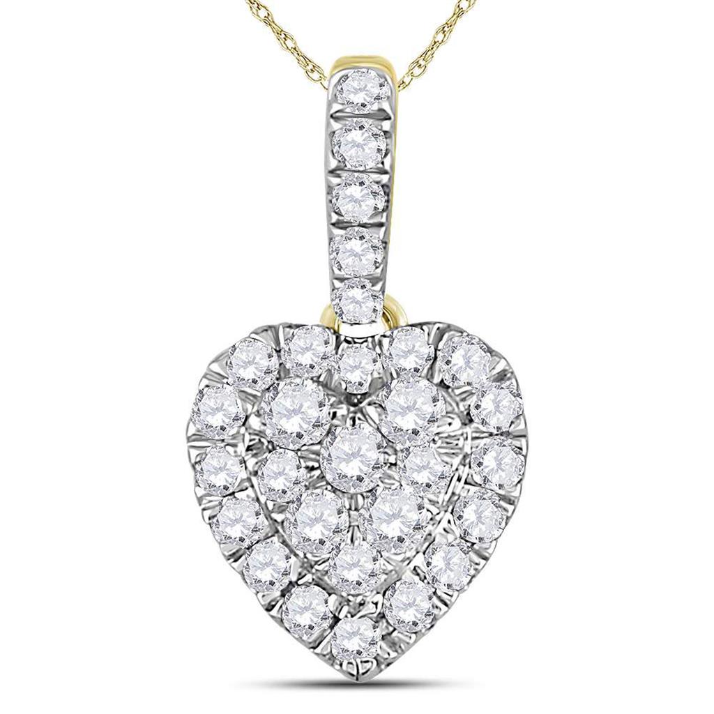 14k Yellow Gold Round Diamond Heart Pendant 1/3 Cttw