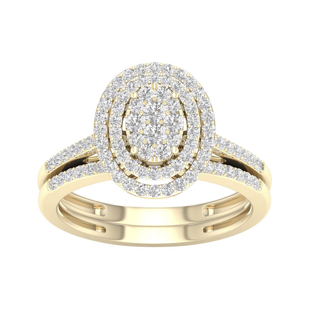 14k Yellow Gold Round Diamond Oval Bridal Wedding Ring Set 1/2 Cttw