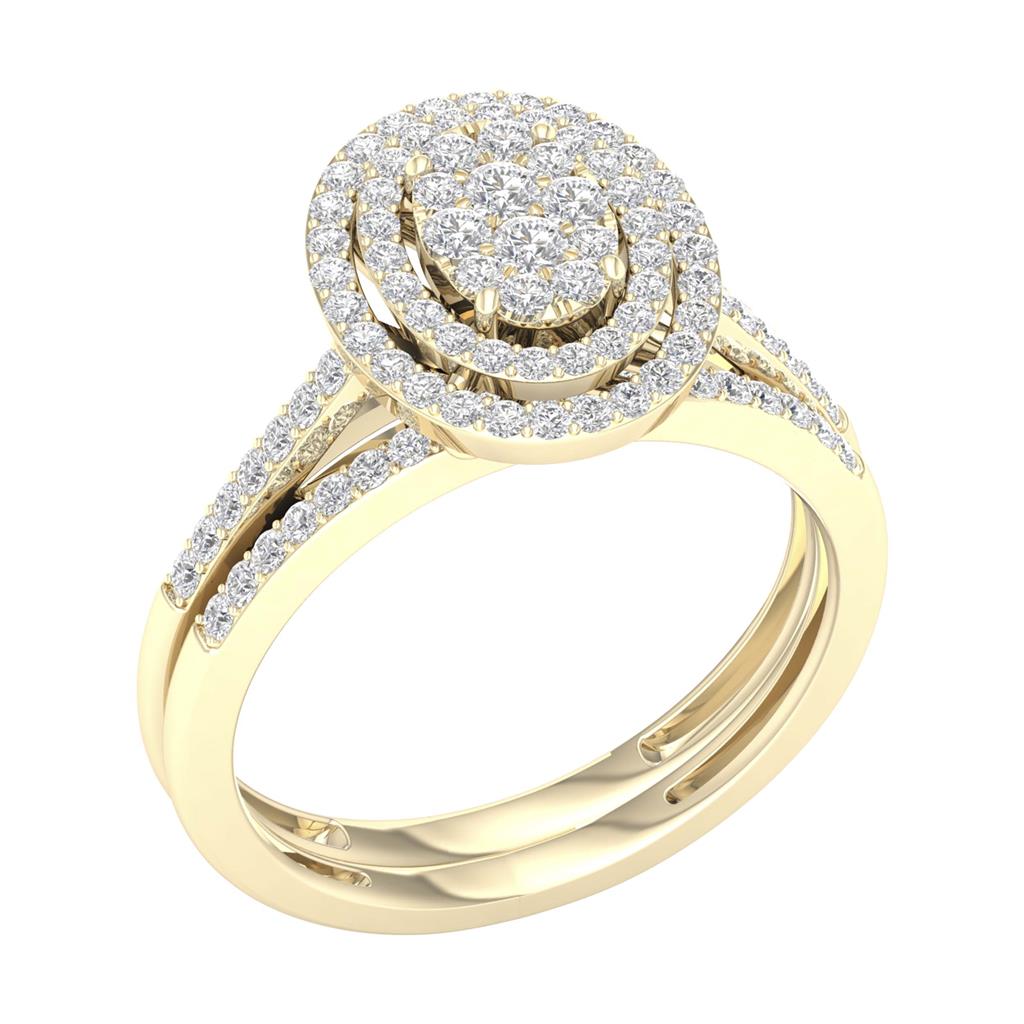 The '14k Yellow Gold Round Diamond Oval Bridal Wedding Ring Set 1/2 Cttw' boasts a precious metal type of 14kt yellow gold and weighs approximately 5.3 grams. With a total...