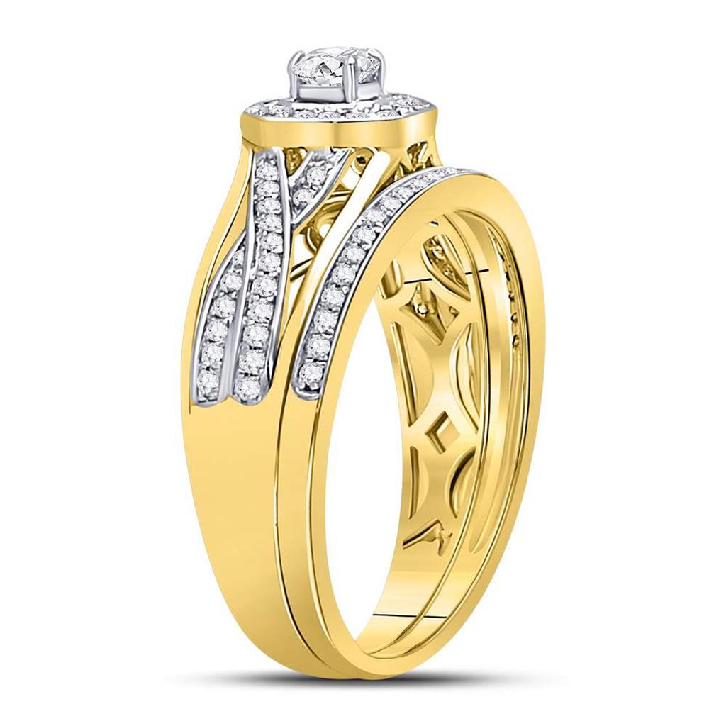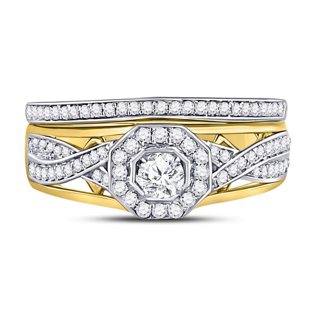 14k Yellow Gold Round Diamond Twist Bridal Wedding Ring Set 1/2 Cttw