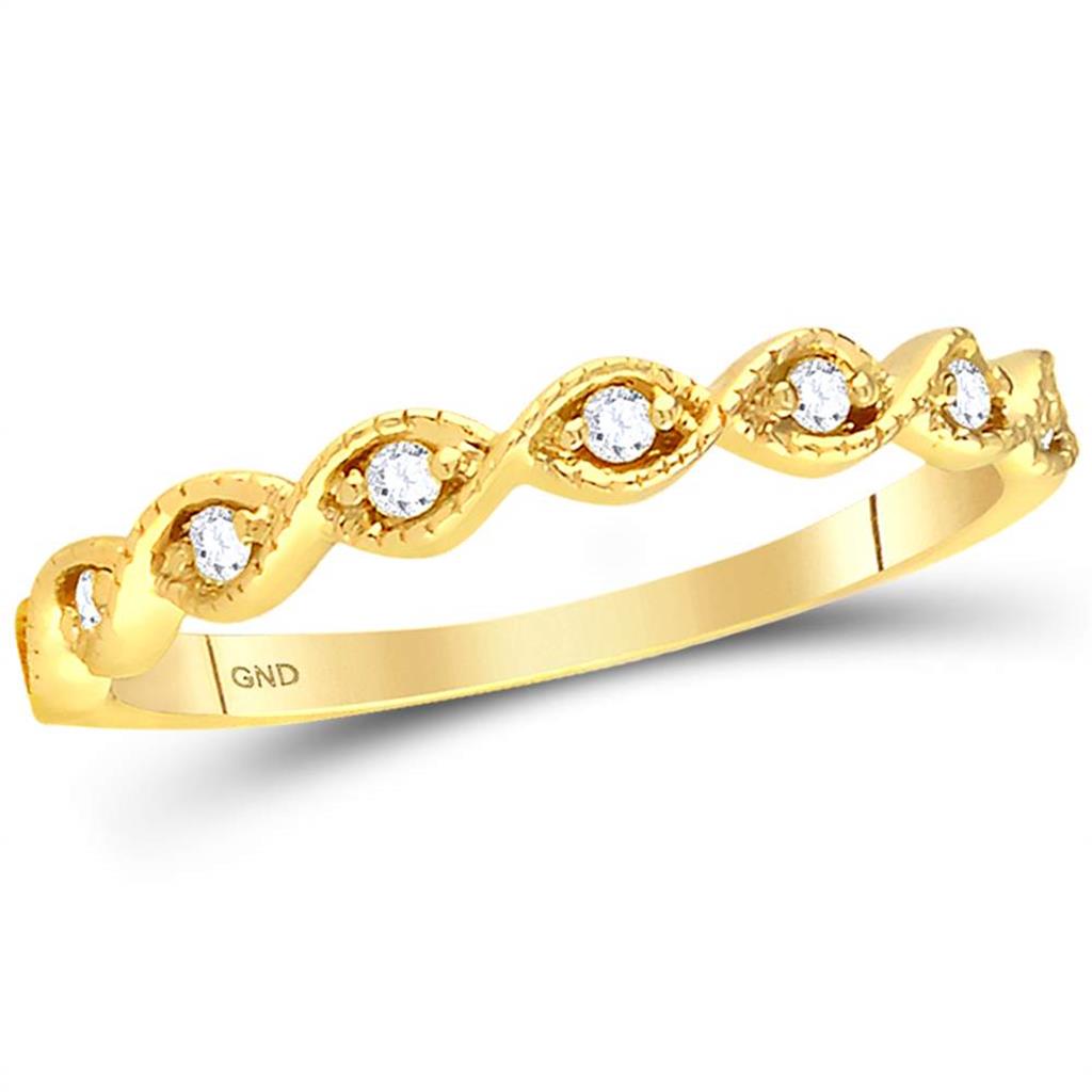14k Yellow Gold Round Diamond Twist Stackable Band Ring 1/10 Cttw