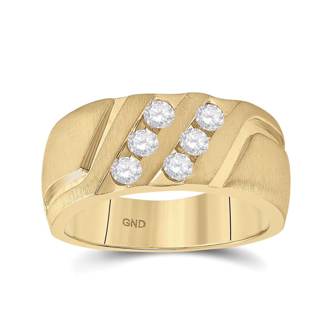 The '14k Yellow Gold Round Diamond Wedding Double Row Band Ring 1/2 Cttw' is a precious piece of jewelry that exudes elegance and class. Made from 14kt yellow gold, this ring has an approximate gram weight of 12.8, giving it a sturdy and lasting quality. The ring is studded with round-cut diamonds that have a total gemstone carat weight of 1/2. The diamonds are of high quality, with a G-H color and I1-I2 clarity, and are pave-set for a unique and stunning look. The primary gemstone carat weight is 0.5, making it a sizable and impressive piece of jewelry. The ring does not include gemstone 2 or gemstone 3, but with the beauty of this ring, it hardly needs any extra adornment to make it stand out. Perfect for a special occasion or everyday wear, this ring is sure to impress.
