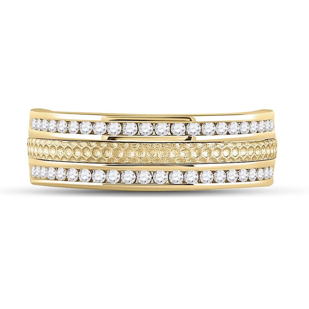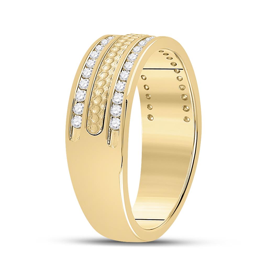 14k Yellow Gold Round Diamond Wedding Hammered Band Ring 1/2 Cttw
