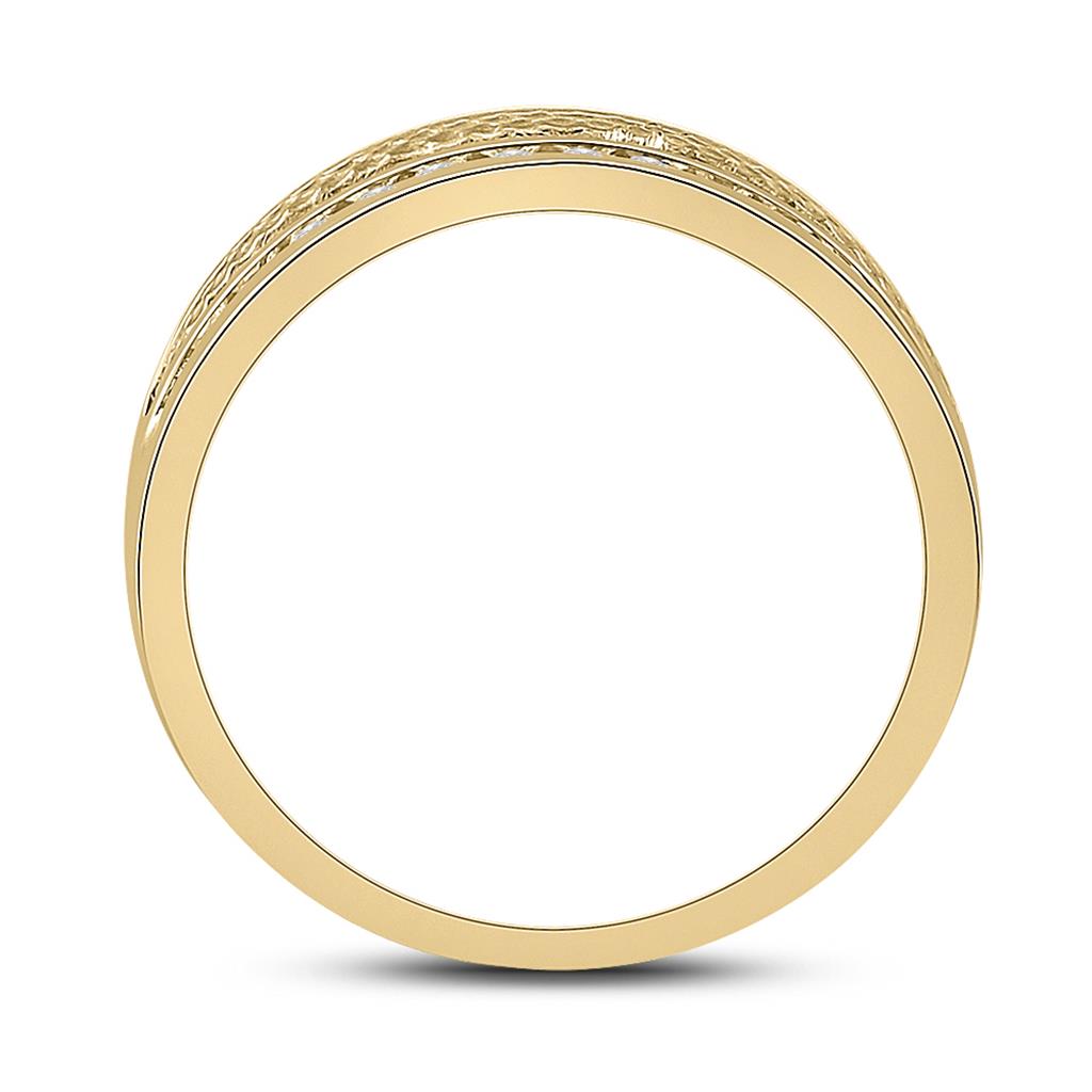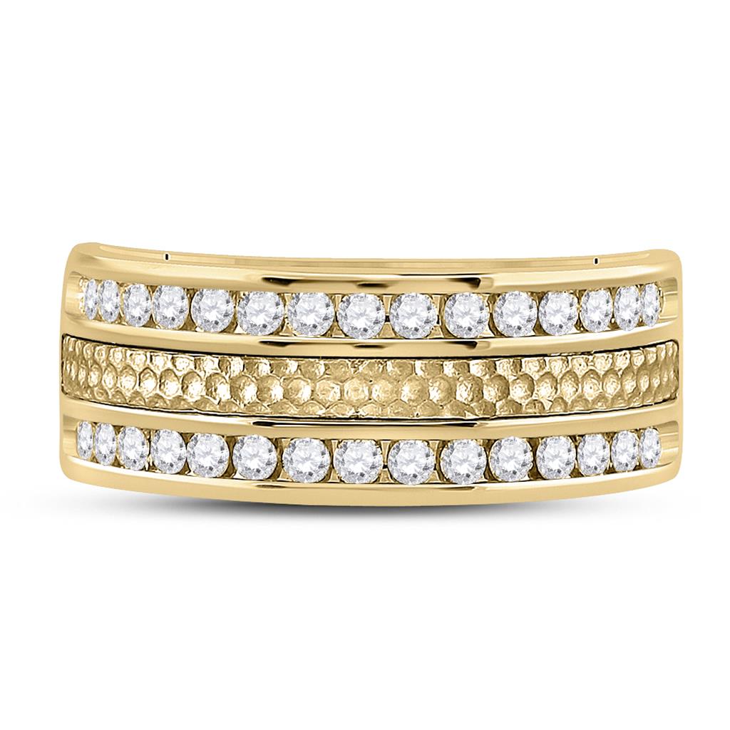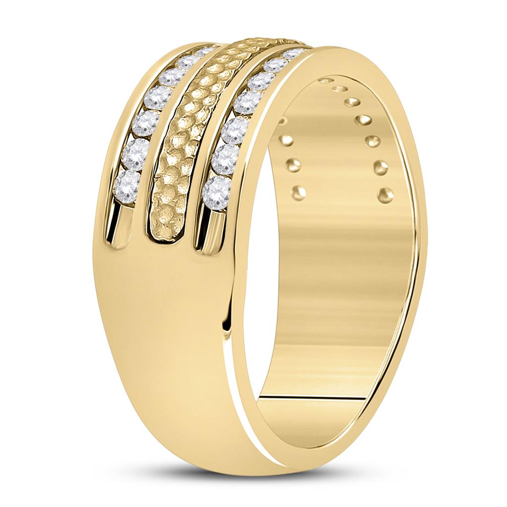 14k Yellow Gold Round Diamond Wedding Hammered Band Ring 3/4 Cttw