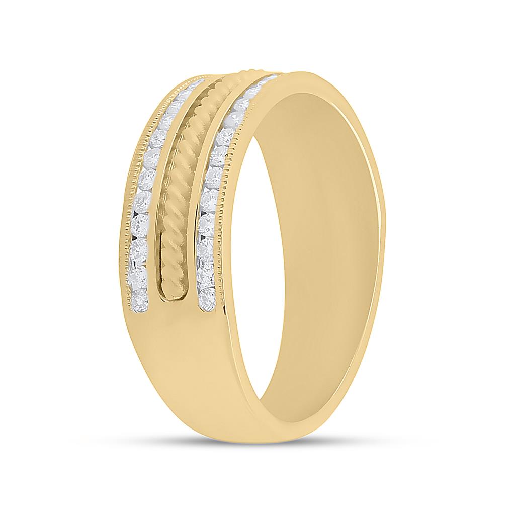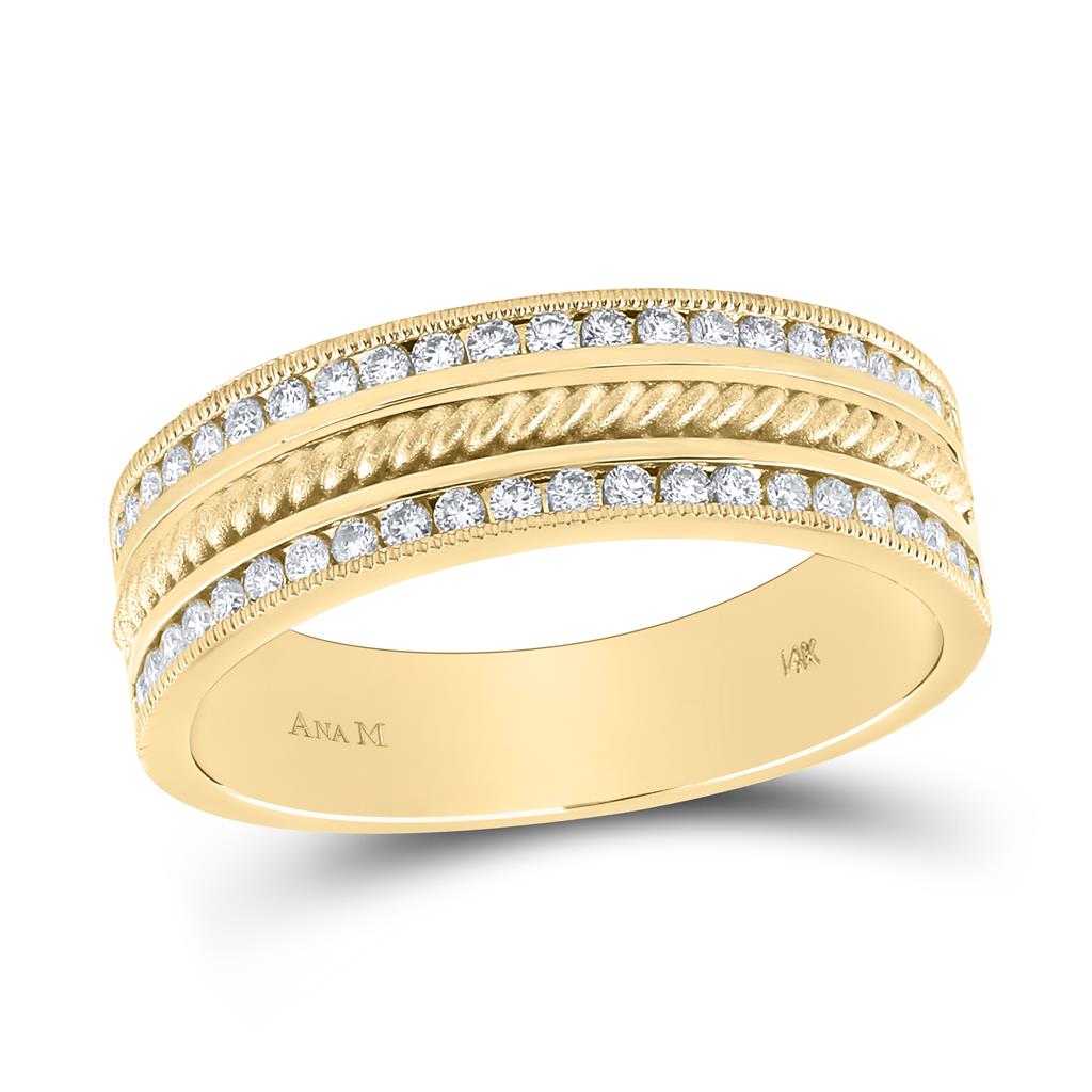 14k Yellow Gold Round Diamond Wedding Rope Inlay Band Ring 1/2 Cttw