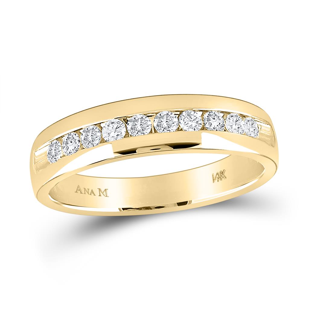 14k Yellow Gold Round Diamond Wedding Single Row Band Ring 1/2 Cttw